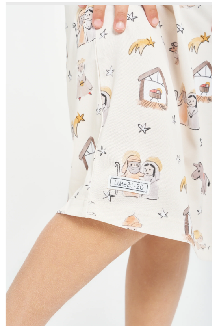 This design is thoughtfully illustrated with the scene of Jesus in a manger, the three kings, Joseph and Mary journeying from Nazareth and the most adorable angels! These pajamas aren't just stylish, they're a meaningful way to pass down the message of Christ's love to your children and loved ones.