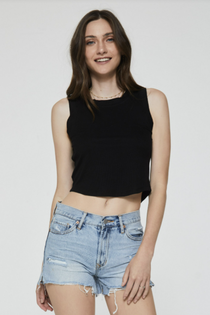 Crop ribbed tank, crew neck, finished sleeveless and curved hem. A match made in heaven, this is the go-to for comfort & luxe, always stay pampered & self expressive. Solid color knit, fitted.