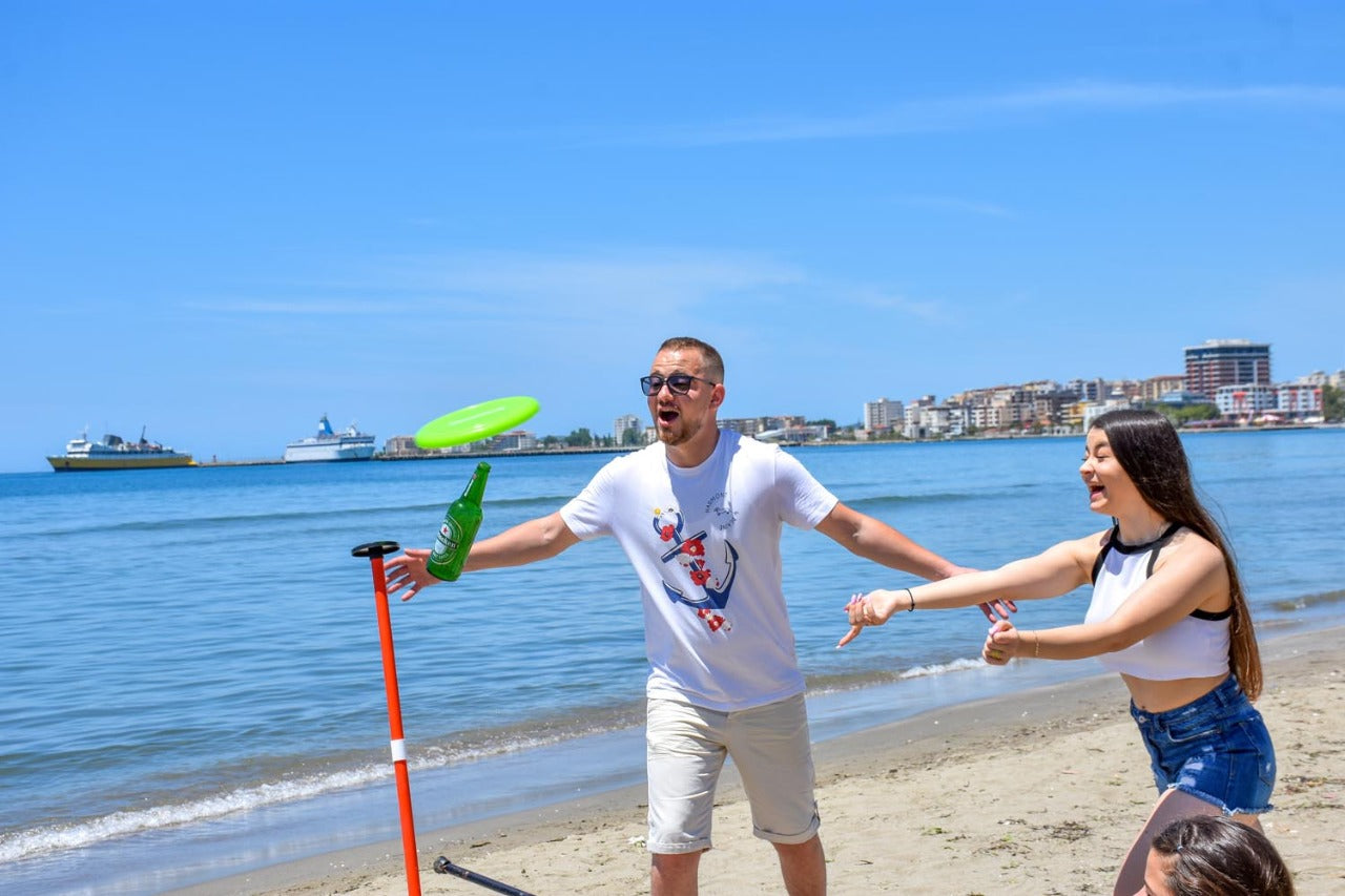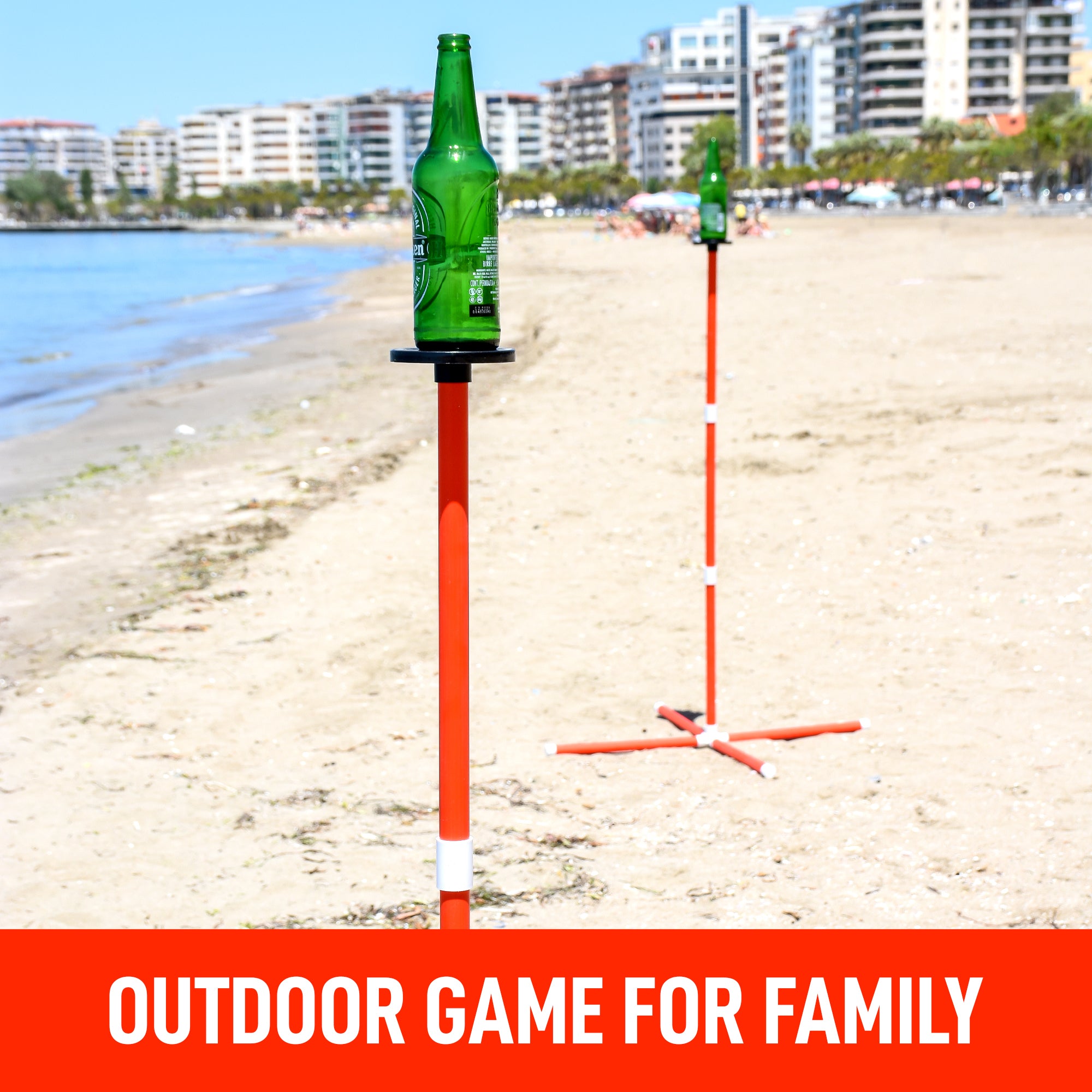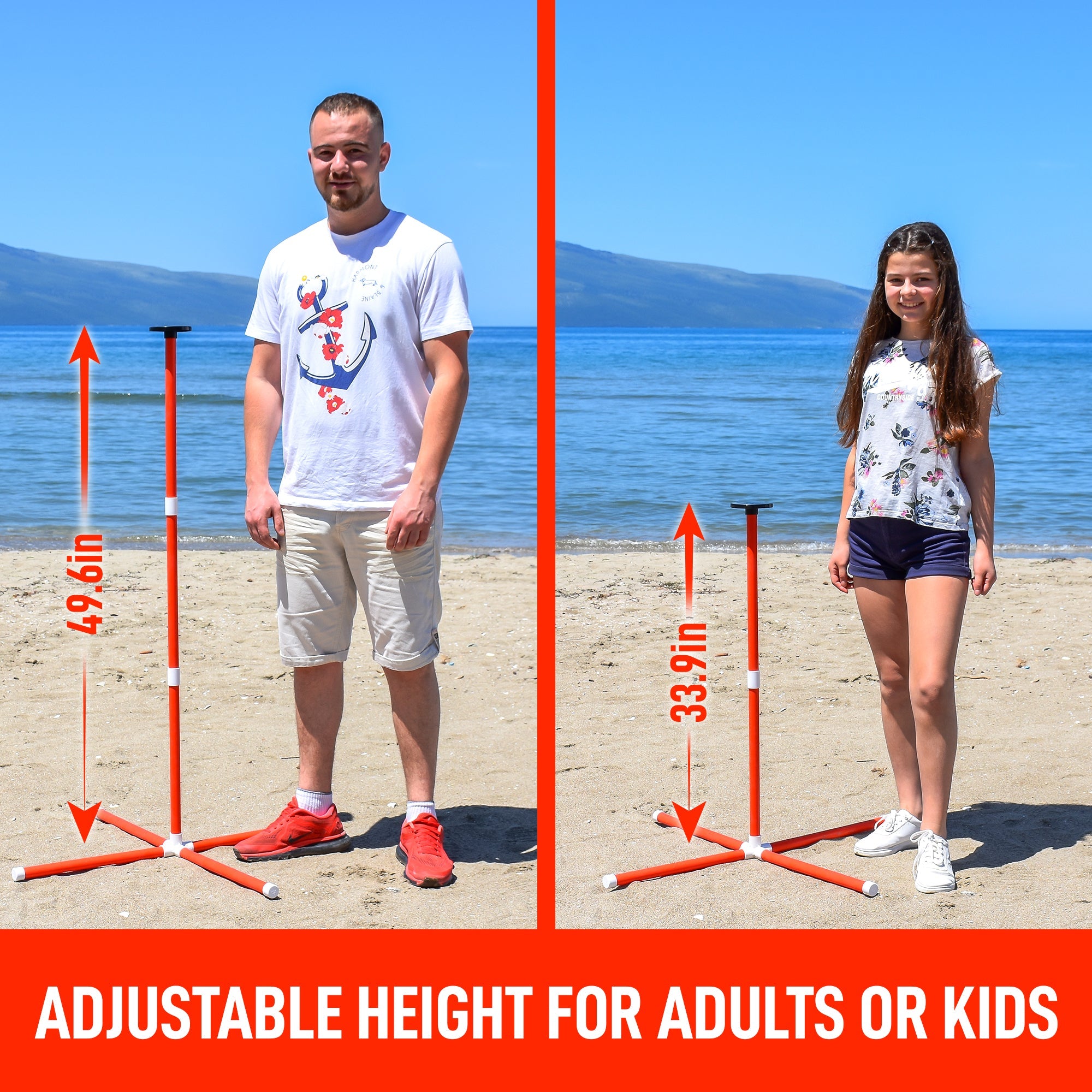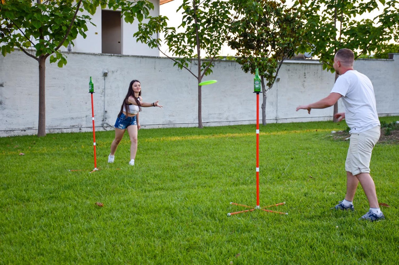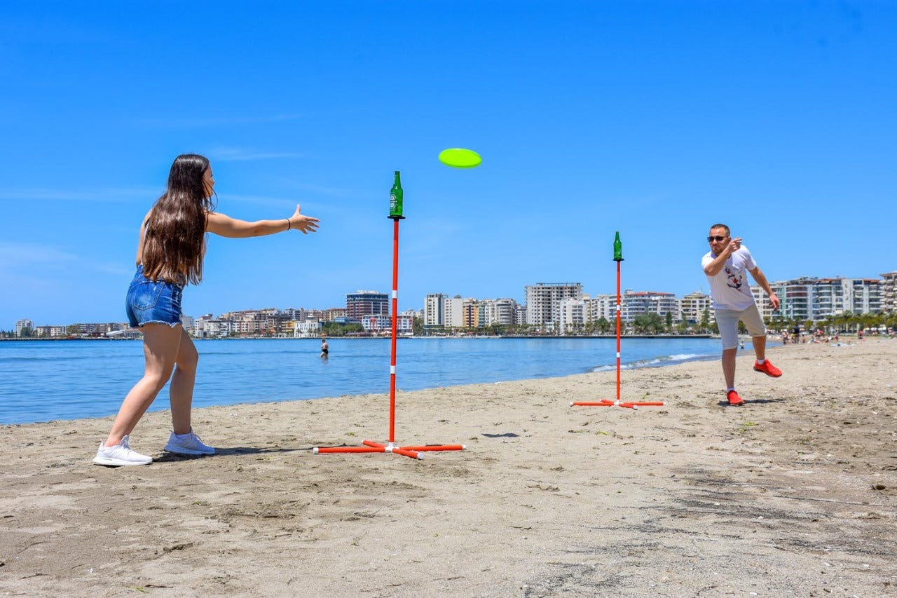 • Create a Variety of Beach Games – More than your average camp games for adults or kids you can use a variety of different accessories beyond our frisbee (not included) to knock off a target including baseballs, softballs, discs, rings, or sandbags.