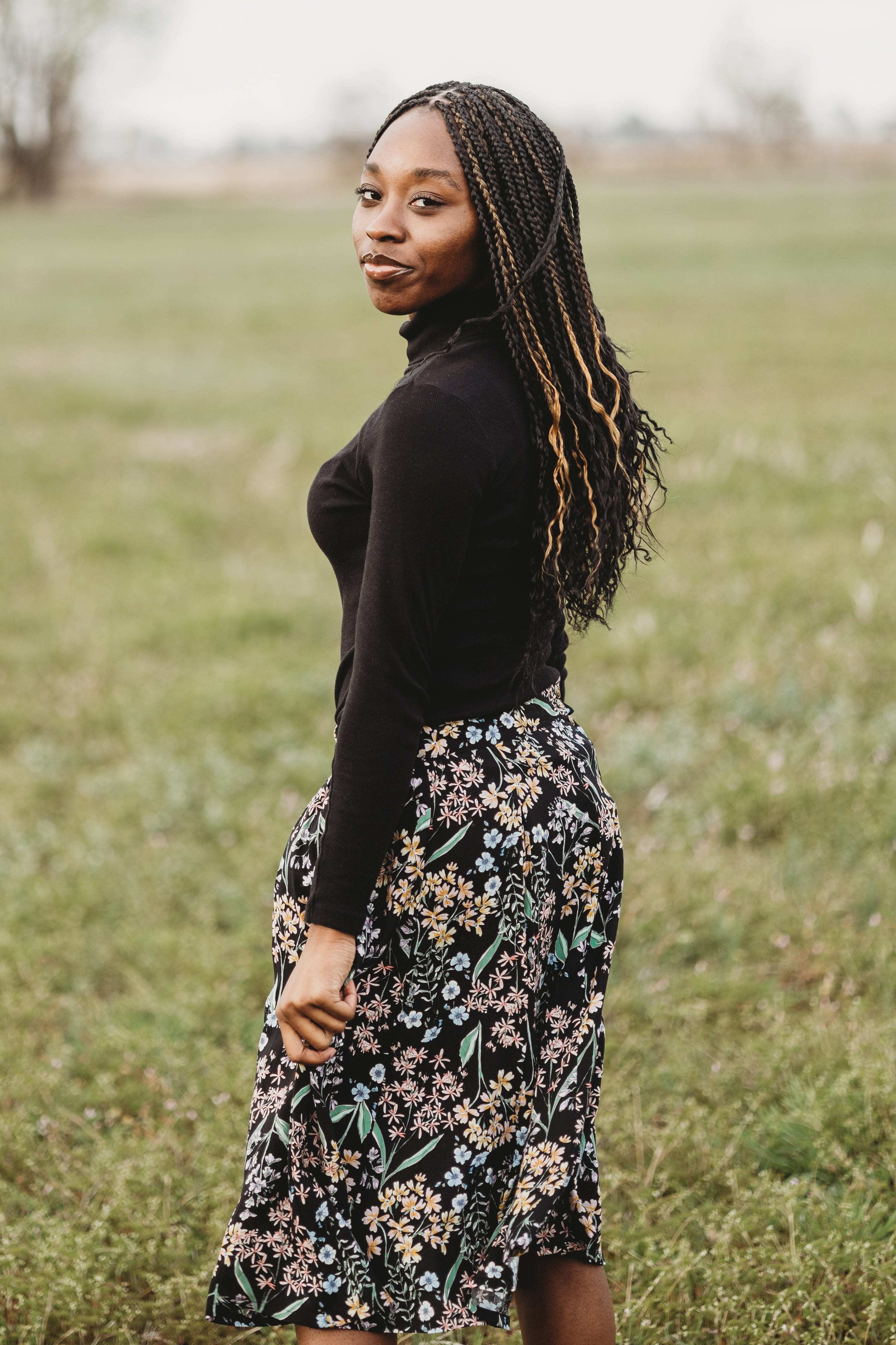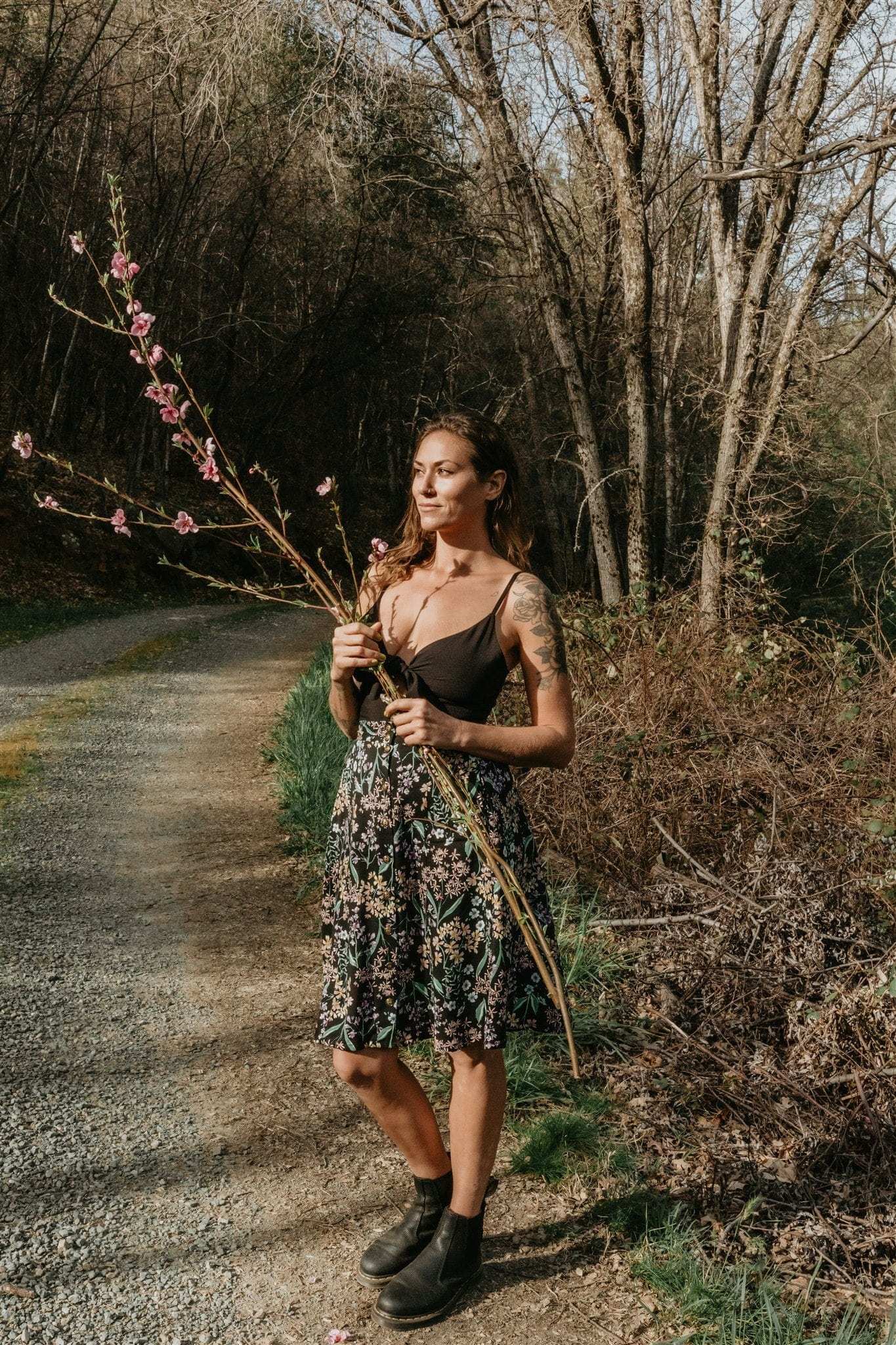 Made from deadstock 100% black rayon challis with herbal floral print.