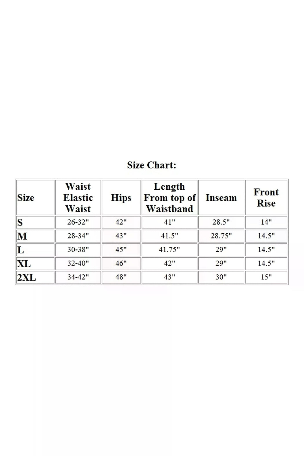 Sizes: Small, Medium, Large, XL and 2XL