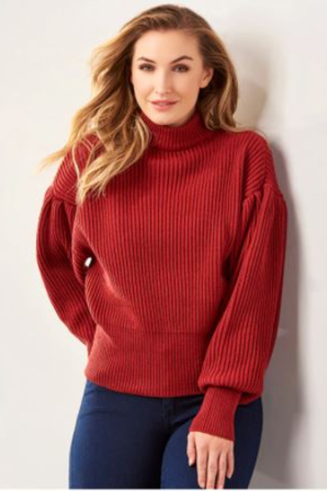 For a cozy look that's second to none, grab this ribbed sweater designed with long balloon sleeves, a high neck and a flattering hem. Pair it back with your favorite denim!