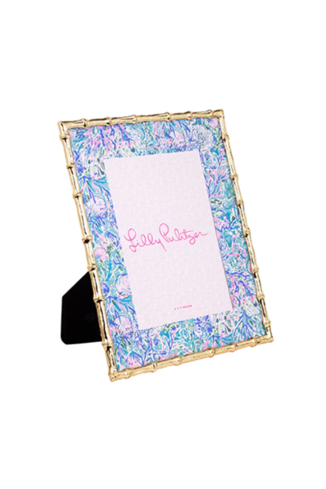 Go glam with this metal bamboo frame that's sized to showcase your favorite 5" x 7" photo and a pretty Lilly print. The easel stand paired with the luxe gold bamboo trim makes this decorative accent the perfect balance of ease and glamour.
