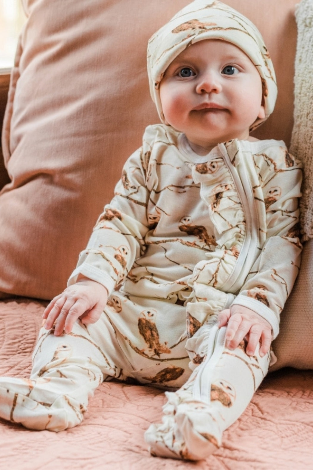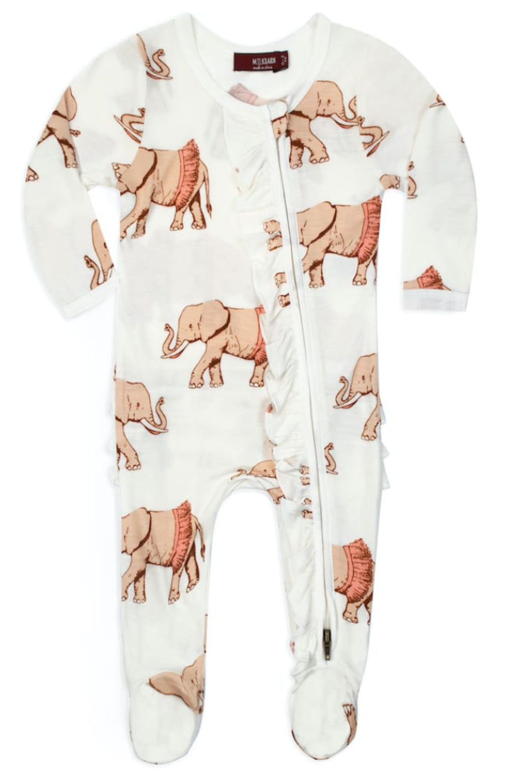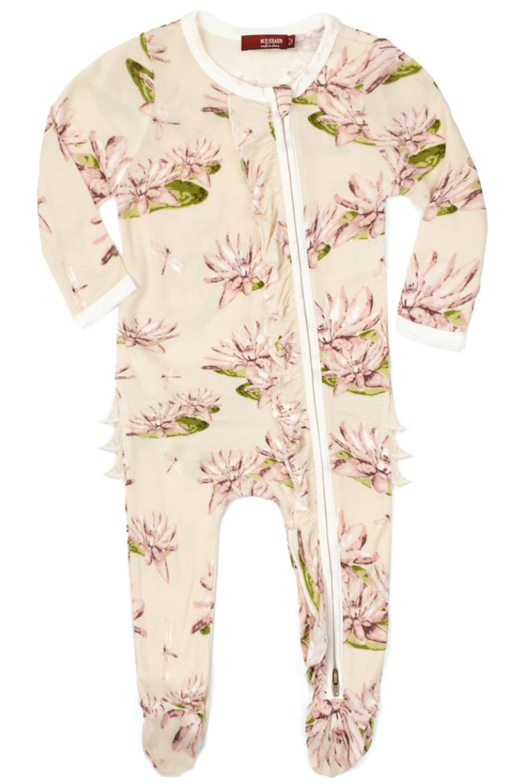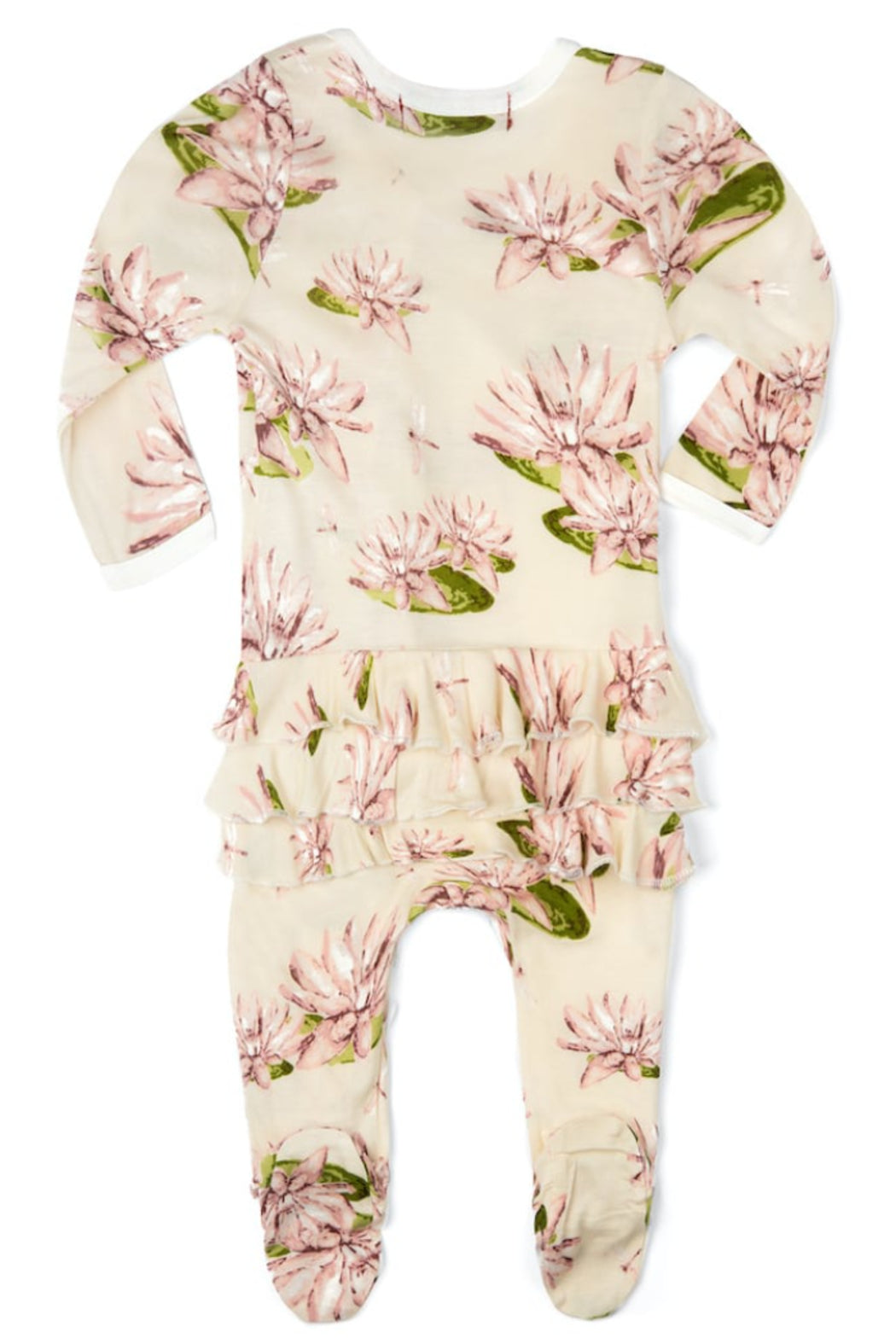 Bamboo RUFFLE BOTTOM Zip Footed Romper