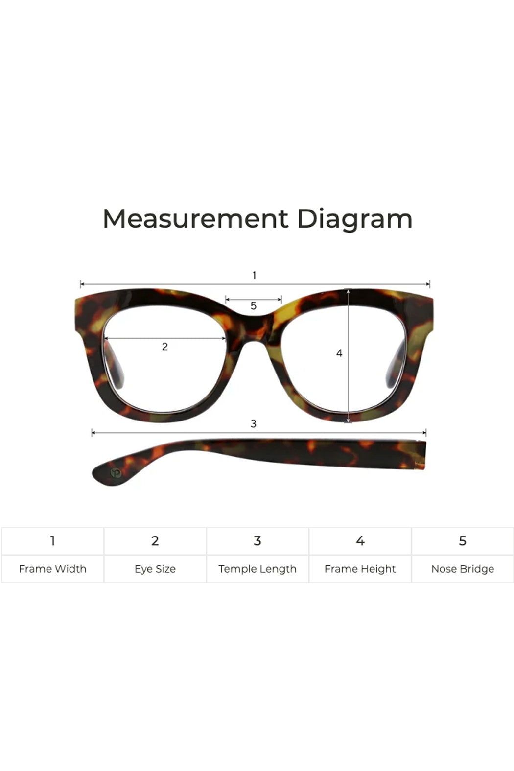 Frame Width: 136 mm (5.4 in). Eye Size: 54 mm (2.1 in). Temple Length: 146 mm (5.7 in). Frame Height: 45 mm (1.8 in). Nose Bridge: 17 mm (0.7 in). Optical Fit: 54-17-146.