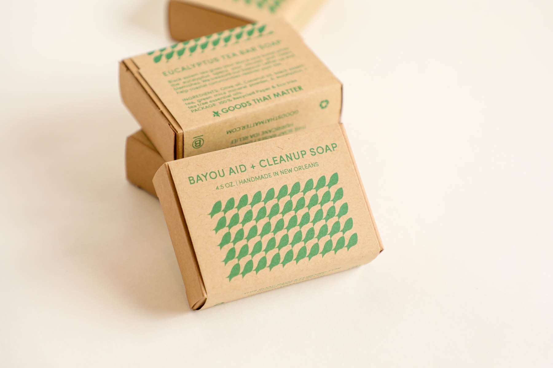 Inspired by our beginnings, a soap that helps with cleanup - we now introduce our Bayou Aid + Cleanup Bar Soap. These 4.5 oz. soap bars give back 20% of proceeds to The Bayou Fund, organized by Melissa Martin of the Mosquito Supper Club to help the coastal communities that she grew up in. This fund puts cash directly into the hands of those whose homes have been destroyed.