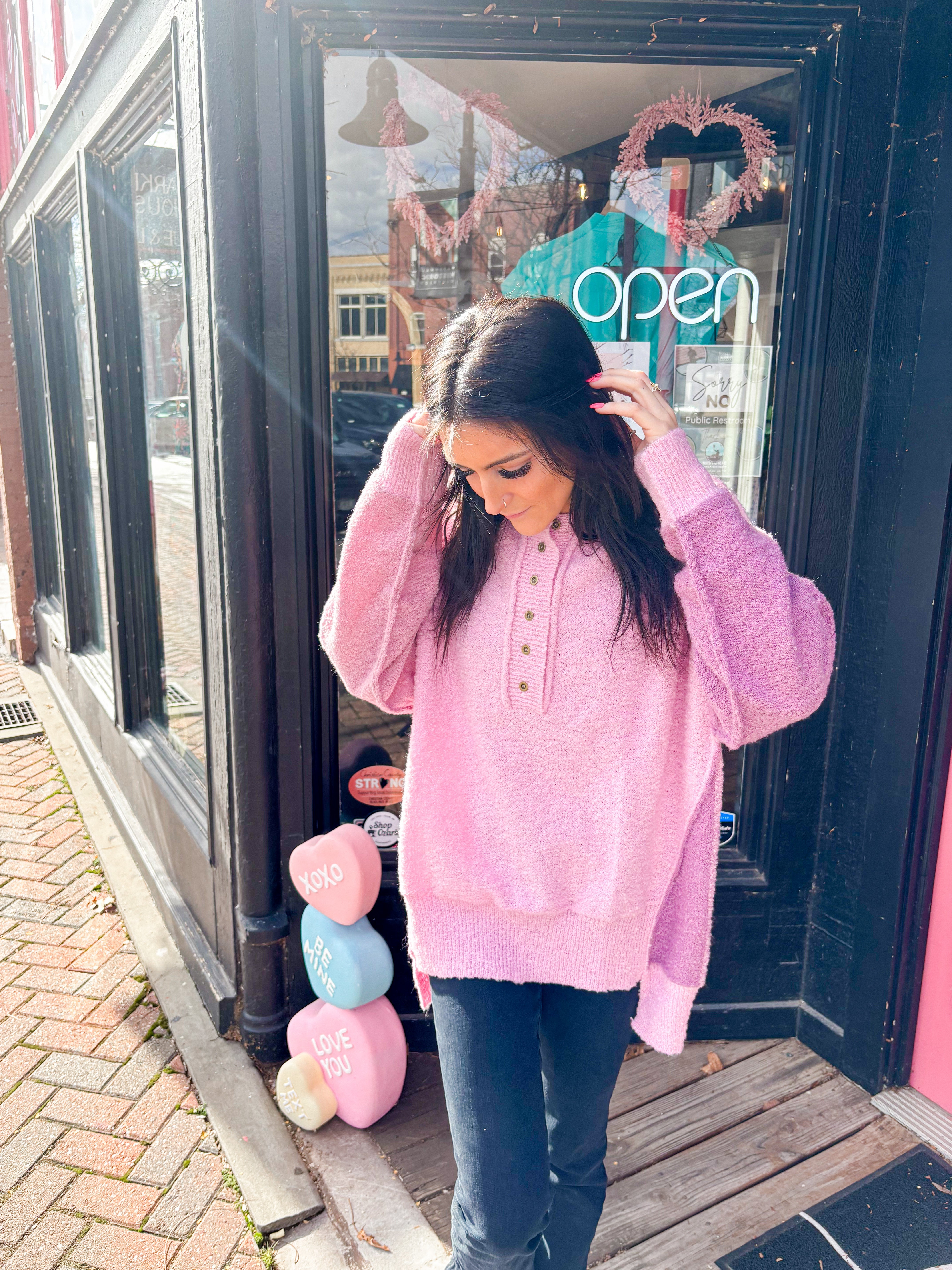 Unleash your style with the Be Free Henley Sweater. This playful design features long sleeves, a Henley neck, and a 1/2 button down with an oversized placket. Stay cozy and chic in this quirky and fun sweater (and get ready for compliments!).