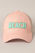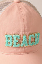 Stay cool and stylish in the sun with our BEACH Chenille Letter Patch Mesh Back Baseball Cap. The adjustable design ensures the perfect fit, while the mesh back allows for breathability. A classy chenille letter patch adds a touch of sophistication and personalization to your beach look.
