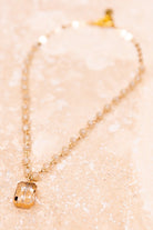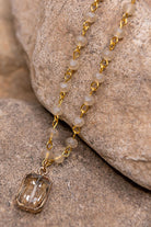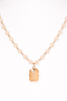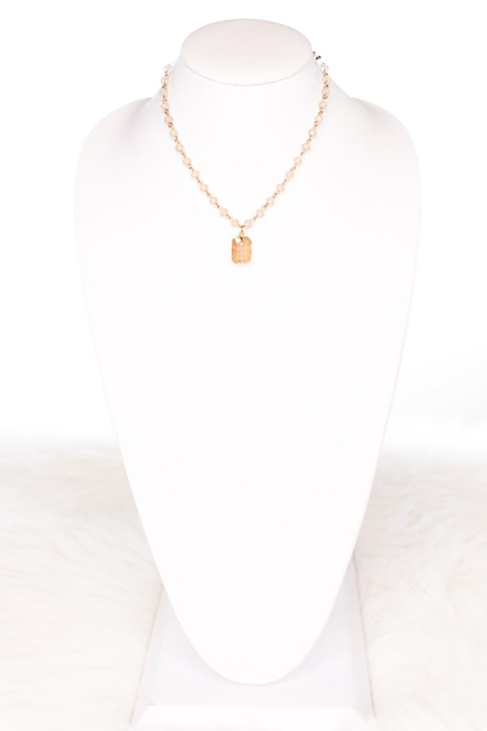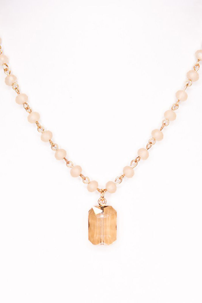 Beaded Chain Necklace Crystal Pendant. Adjustable, beaded chain choker with a crystal emerald-cut pendant. Good for layering. 9" long chain with toggle clasp, emerald-cut crystal pendant 3/4" tall. Shown on 17" bust. You can wear this gemstone jewelry every day and it will absolutely add a stylish finishing touch to your look. A beaded statement necklace is suitable for your summer clothes. You can choose this big bold sunstone necklace for your mom, wife, or girlfriend as a birthday gift. If they like semi-precious stones and big pendants, this handmade jewelry is a perfect gift for them. Handmade With Love and Carefully Manufactured. The beads are made of natural material, so the pieces may be slightly different, irregularities and imperfection are signs of the handmade process. Due to the natural materials used in Dylan Thomason jewelry, please expect some variation in color and/or texture.