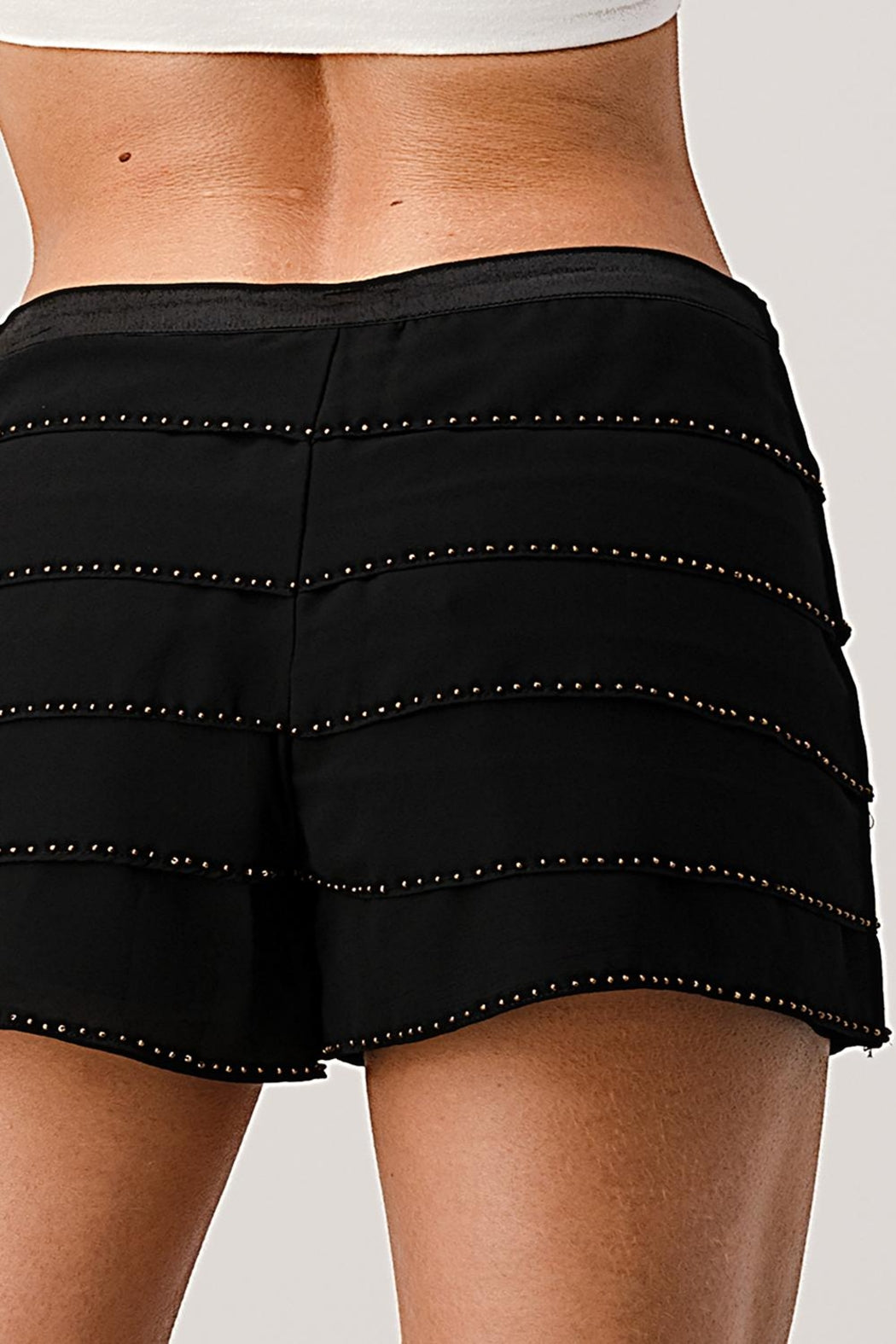 Beaded Scallop Layered Hem Shorts Crepe Georgette