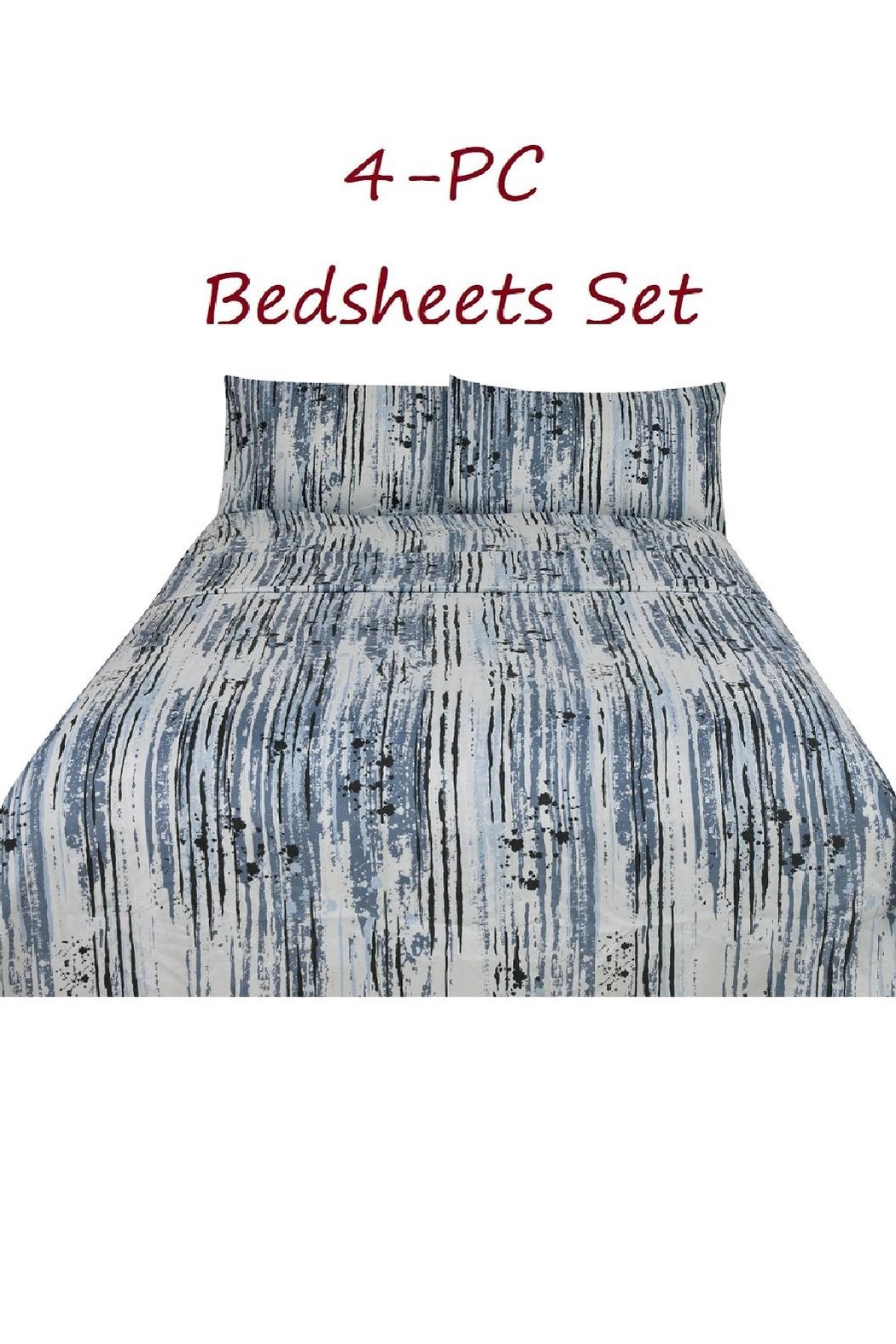 Bed Sheets Set 4-Pc Blue & Gray Streaks Full Queen King Size