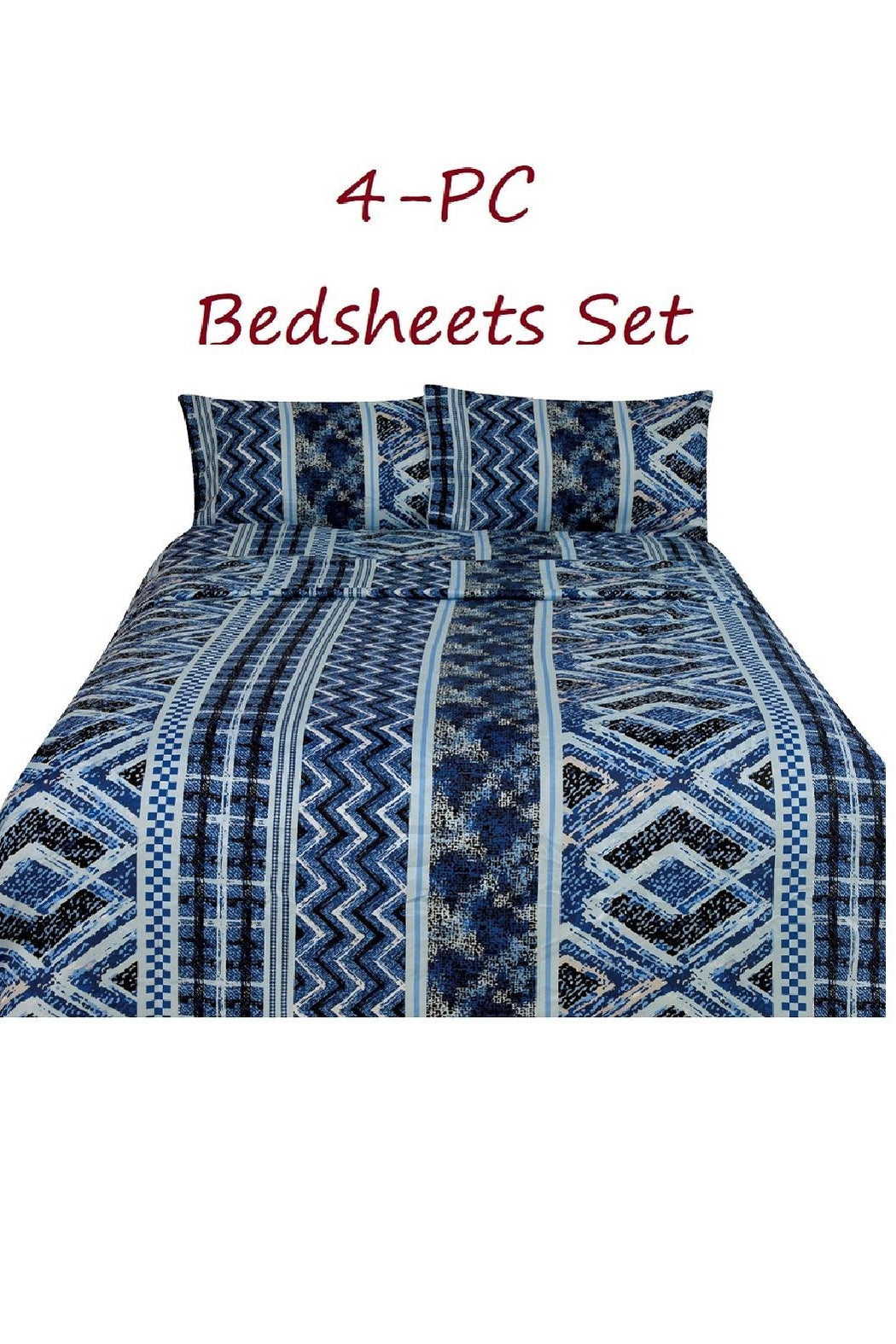 Bed Sheets Set 4-Pc Geometric Patterns In Blue Full Queen King Sizes