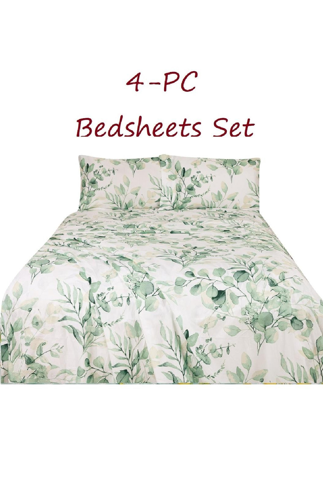Bed Sheets Set 4-Pc Green Floral Full Queen King Size