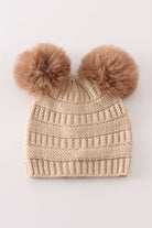 Stay warm and stylish in our Beige Double Pompom Cable Beanie. This cozy cable-knit hat features two playful pompoms for a fun twist. Perfect for adding some personality to your winter wardrobe.