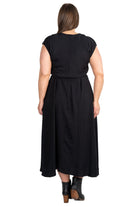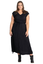 Cut on the bias to create a huggable and breathable drape. Our signature pockets because we can't get enough of them. Slightly capped sleeve for a little coverage that hits the arms in the most flattering way. Long thin spaghetti style sewn in belted sash that can be tied in the front or back of the dress.