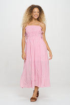Step into comfort and charm with this striped maxi dress, featuring a stretchy smocked bodice and playful side tie details. Its adjustable spaghetti straps and flowy silhouette make it a perfect choice for casual outings, vacations, or any sunny day adventure.