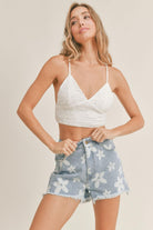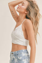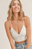 This bright white cropped cami features adjustable straps that cross in the back, a flattering v-neckline with supportive seams, and a smocked back for comfort and ideal fit. Pair this sweet tank with any of your summary pants, shorts, or skirts!