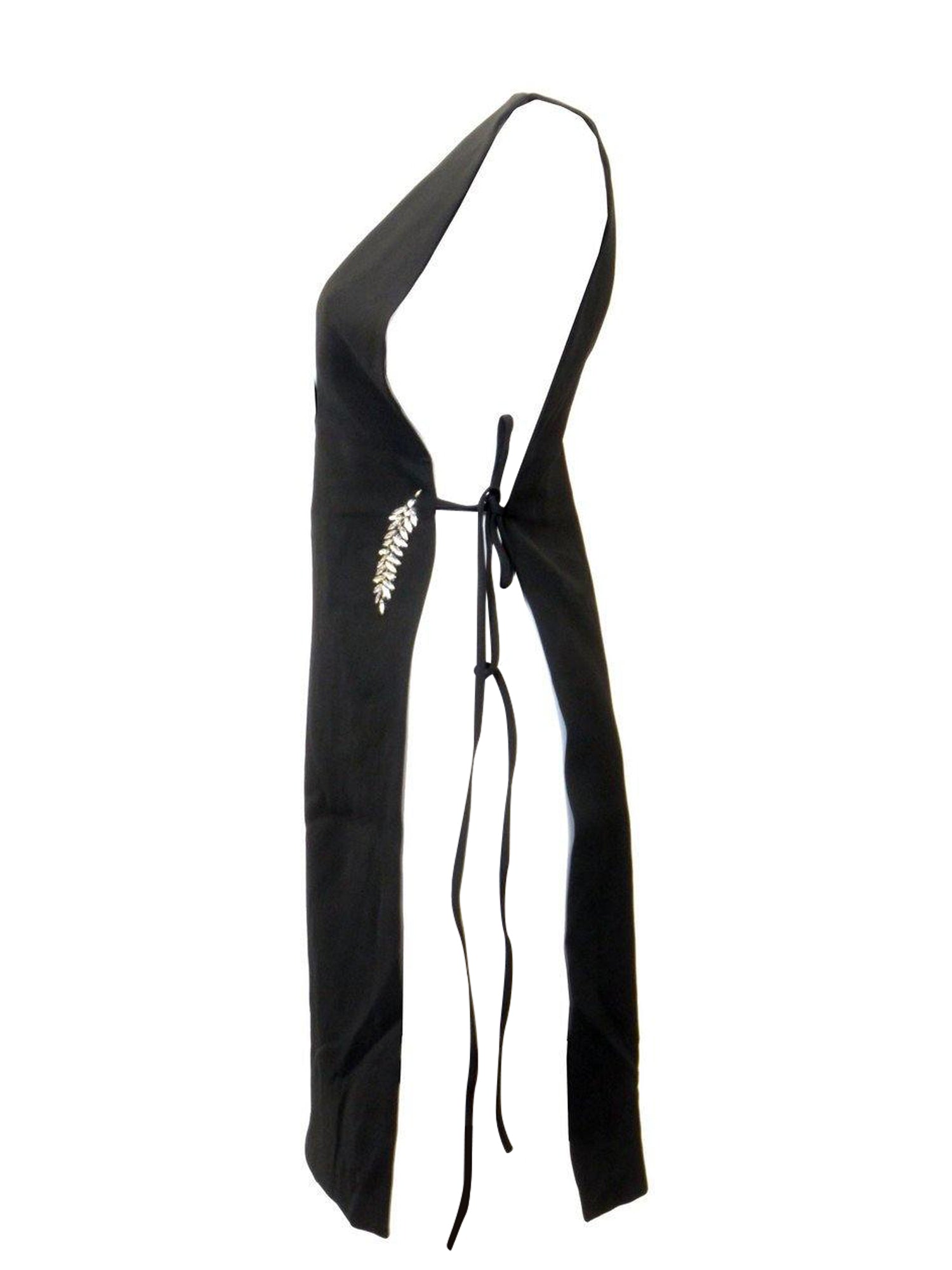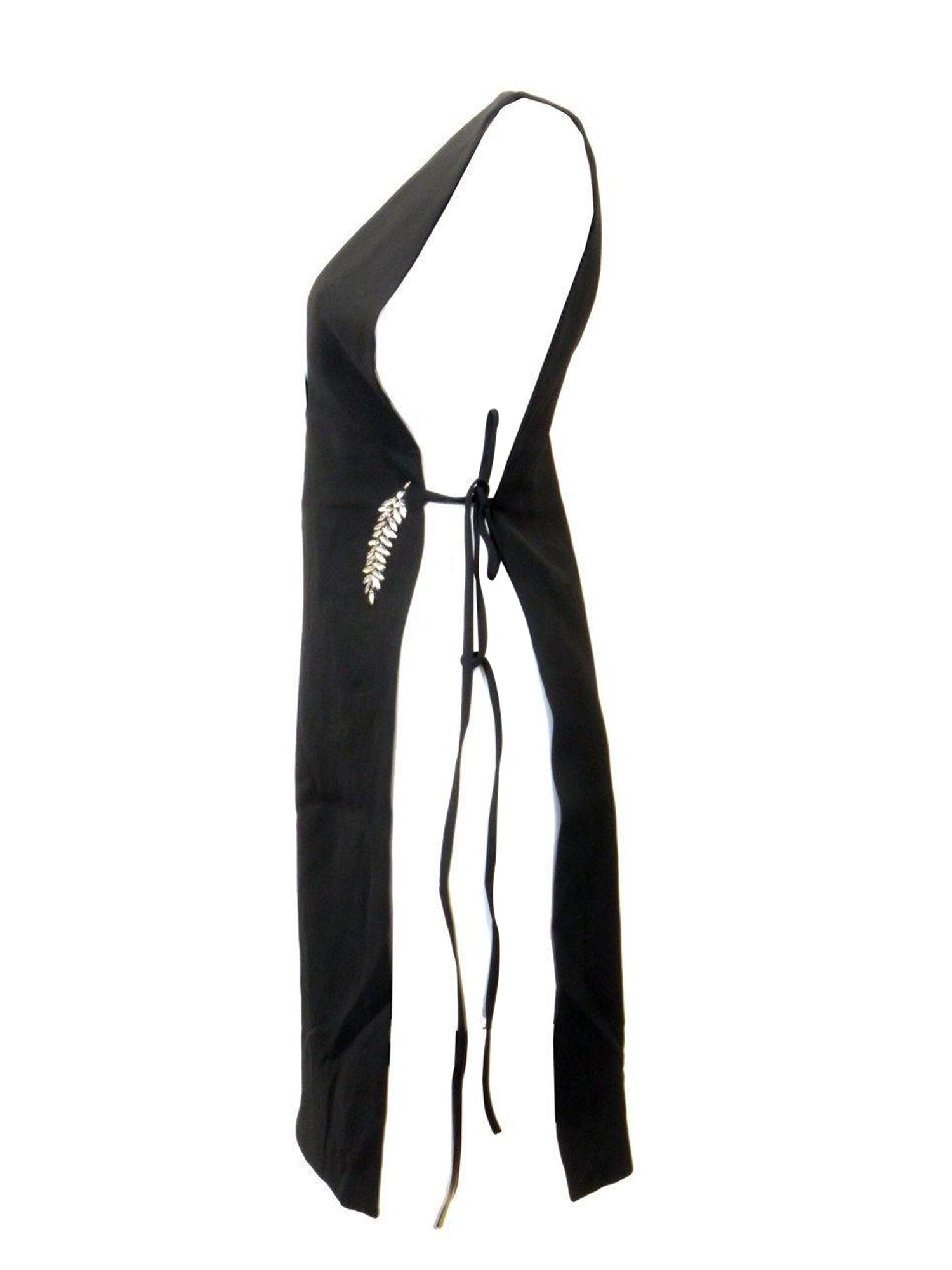 Black vest overlay top with v-neckline, open sides with tye closure, looks great ontop of the Beulah Black Pleated Skirt Dress.