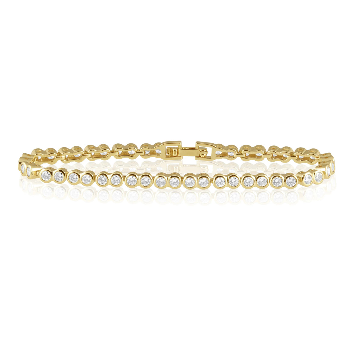 Your jewelry collection isn't complete without our Bezel Tennis Bracelet, a true classic piece featuring meticulously placed CZ stones