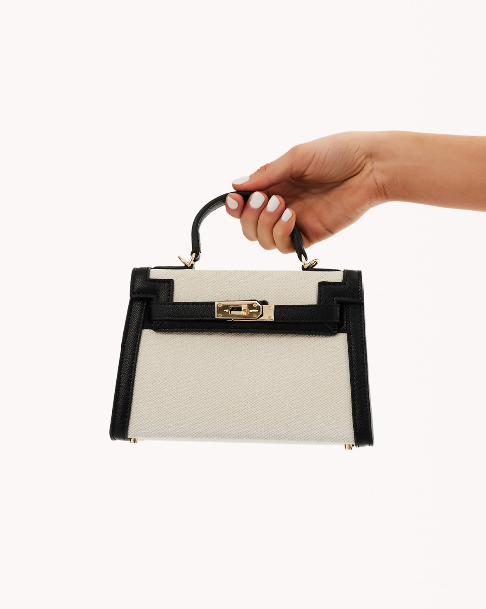 Discover the versatility of the BILLINI Hariette Bag in Linen & Black - perfect for a night out or running errands! This mini handbag features a trendy black and linen design and can be carried as a top handle or crossbody. Elevate your style with this must-have accessory!