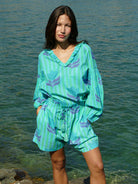 Our Carlie Shorts are your new summer staple — light, lovely, and made for sunshine. Crafted from soft cotton with a charming mix of stripes and tulip prints, they’re equal parts effortless and eye-catching.