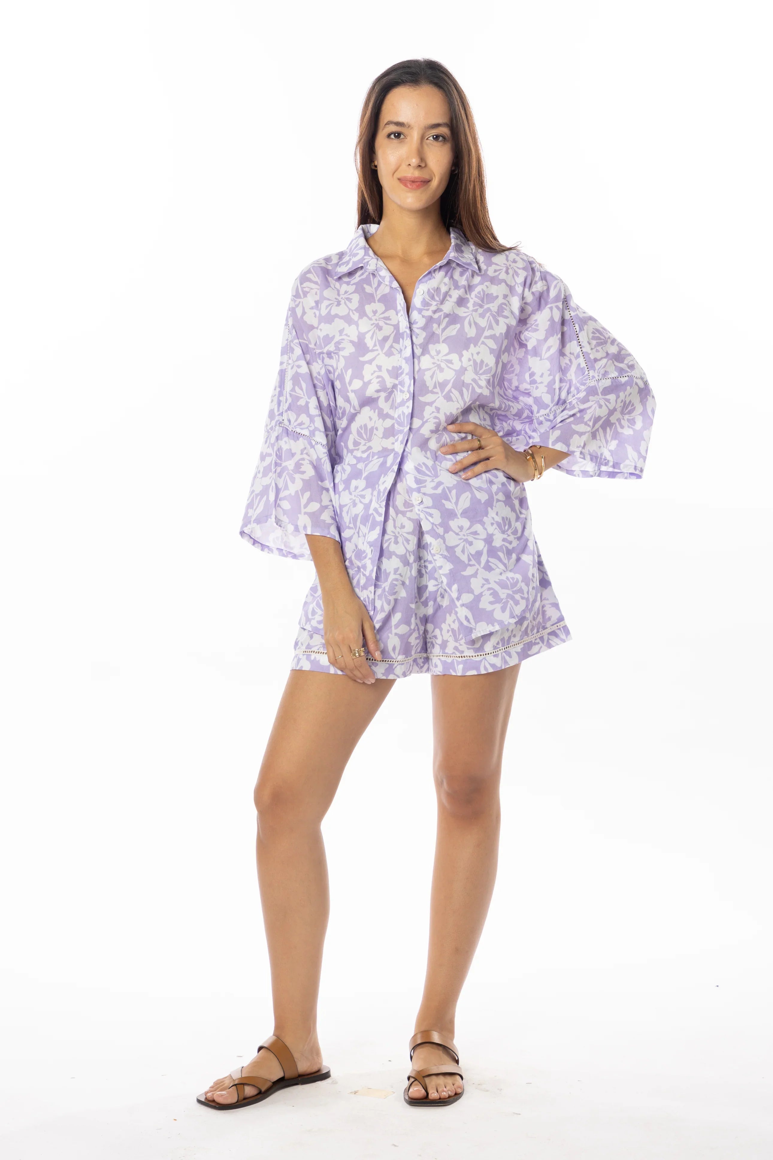Our Robi Shorts are an essential piece this season, fresh cotton fabric with a floral print and matching borders.