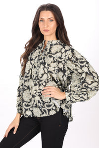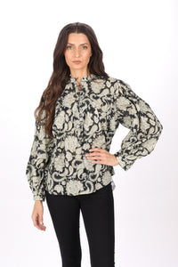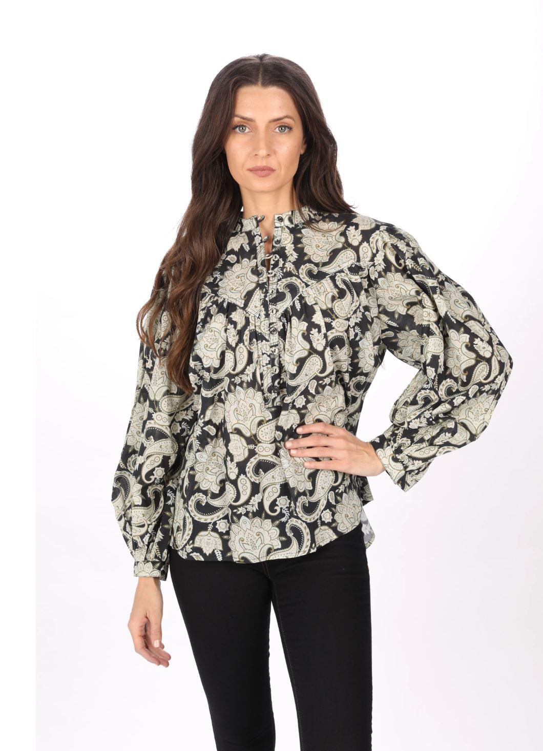 Sam Top Ideal for a casual look, made with a round neckline and elegant buttons that you can wear open or closed. Long, puffed sleeves, ideal for jeans or pants during fall.