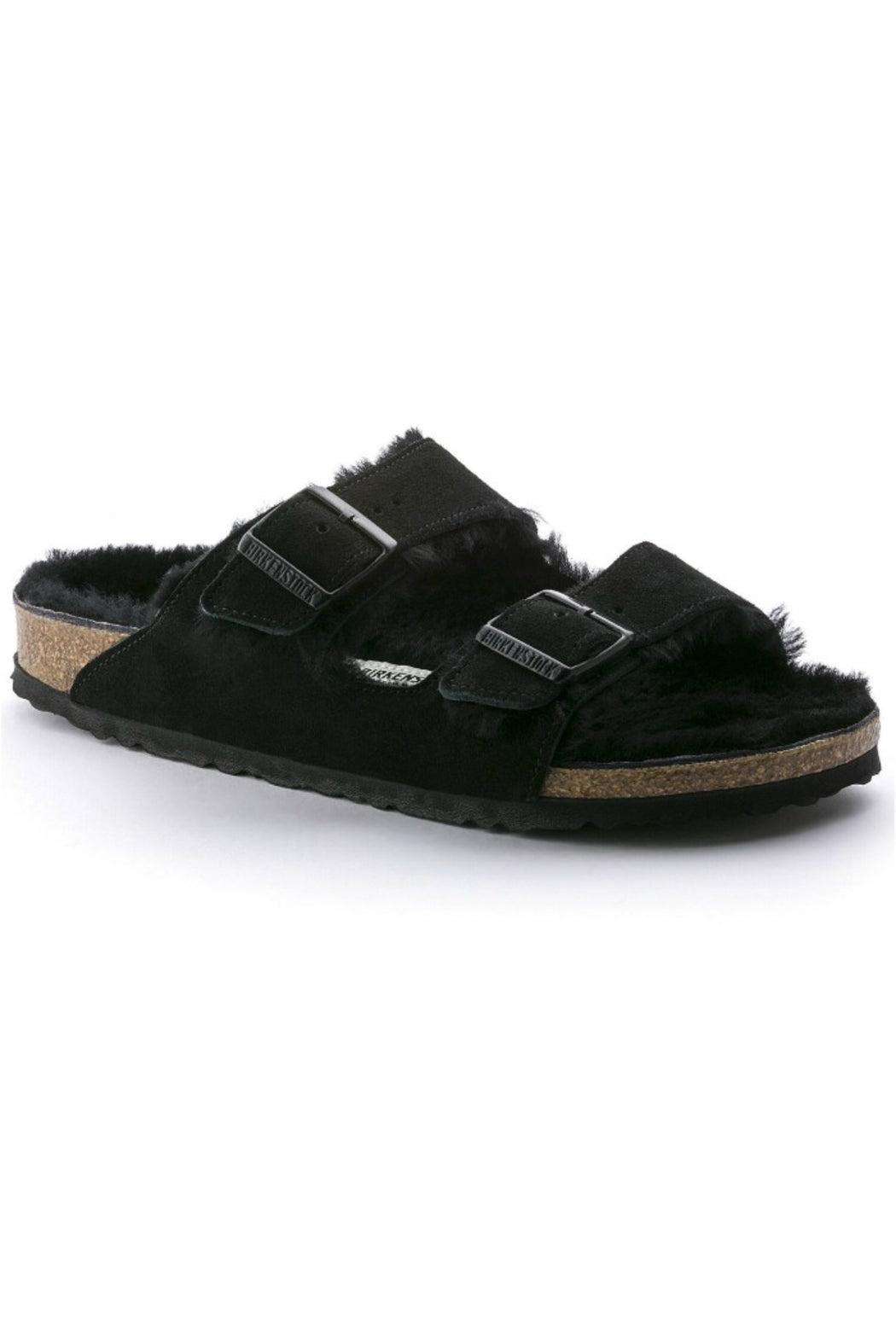 Anatomically shaped cork-latex footbed with shearling lining