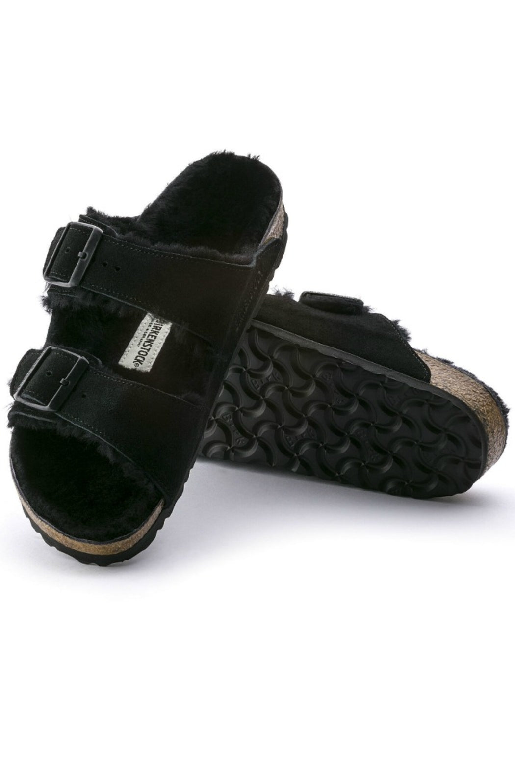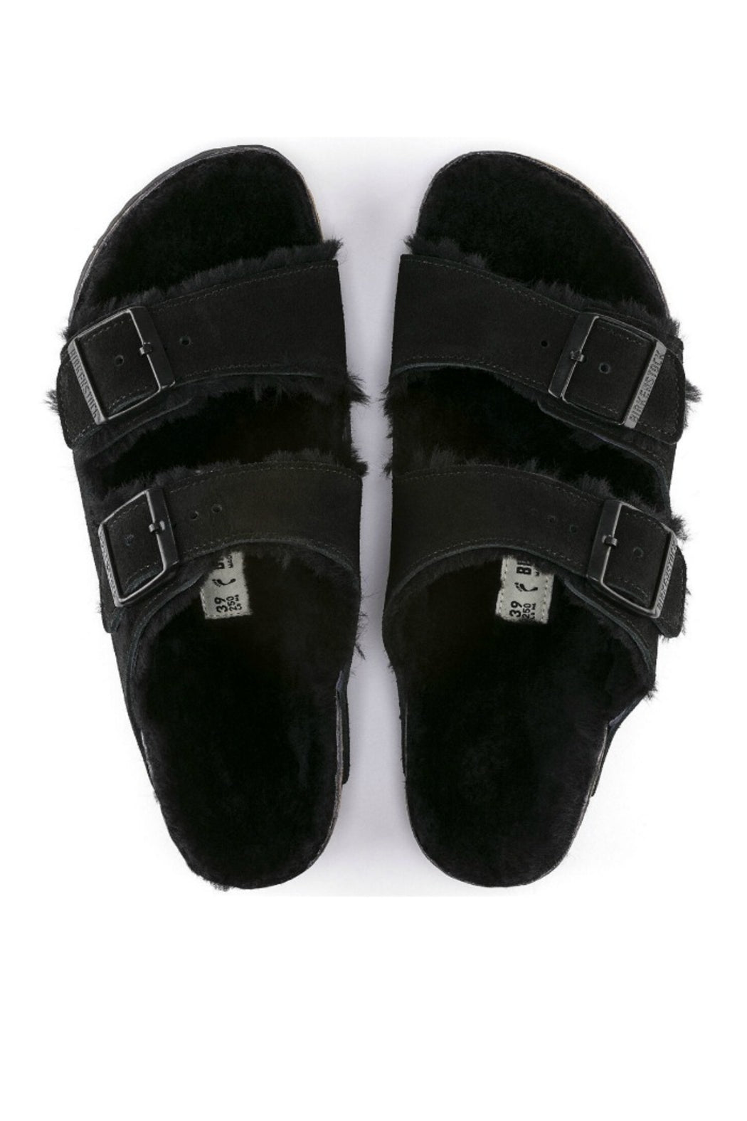 Details: shearling-lined straps with two individually adjustable metal pin buckles