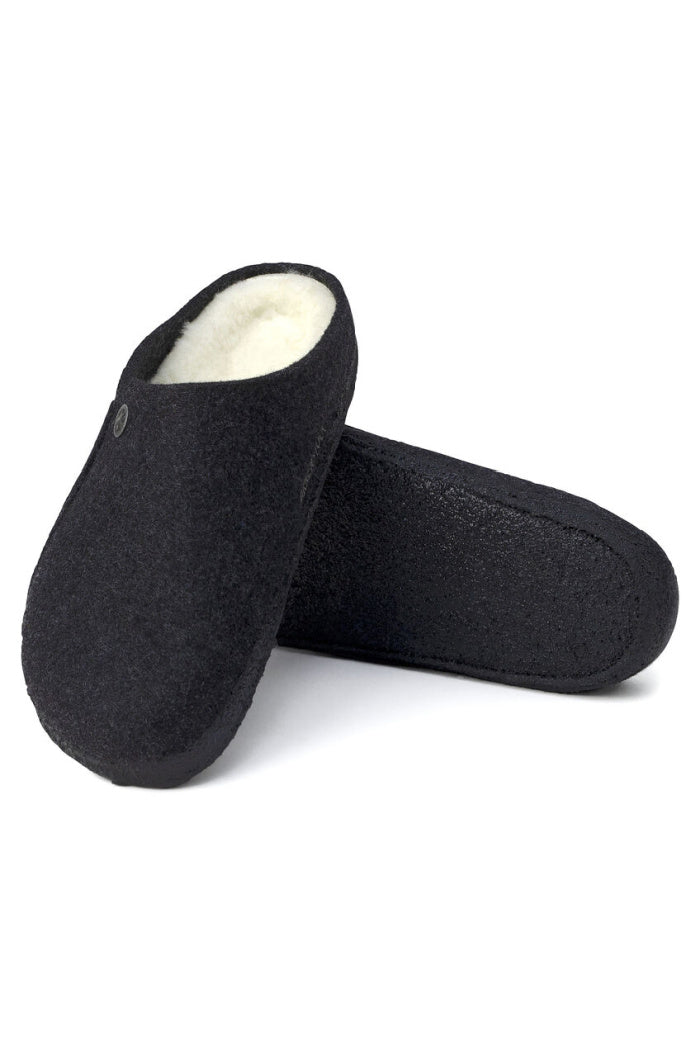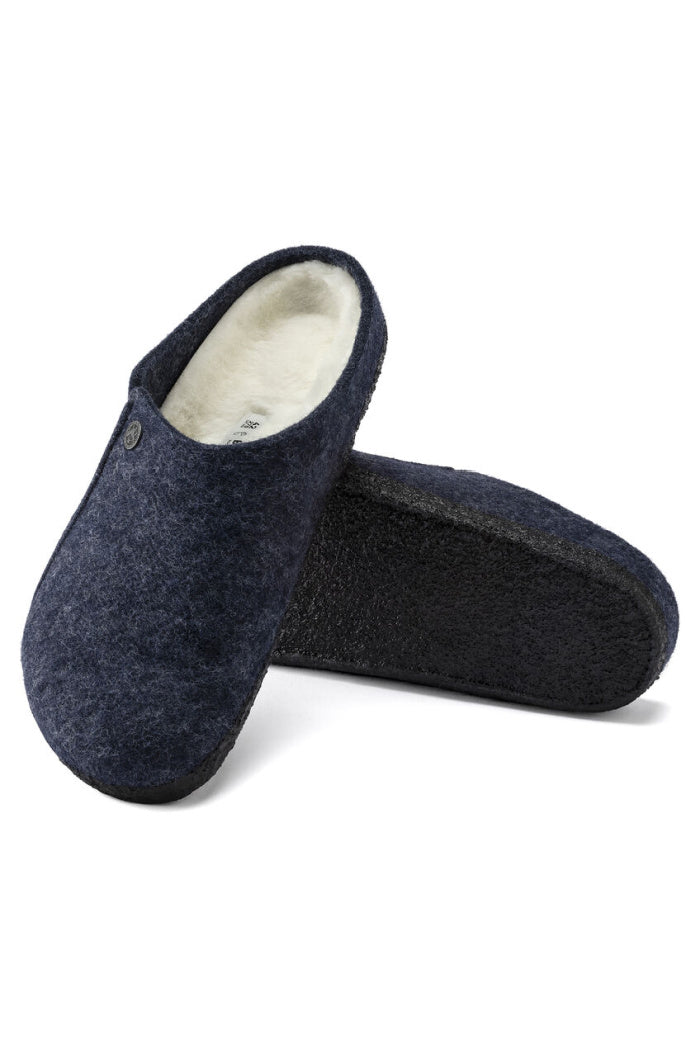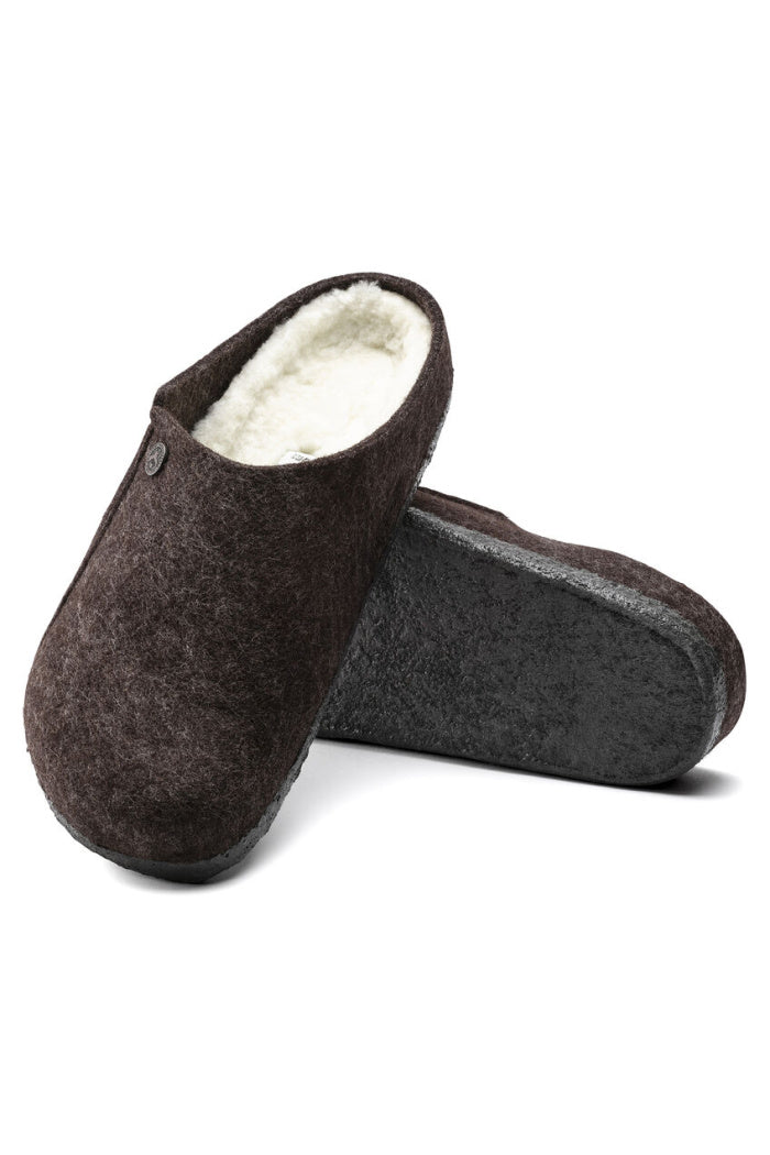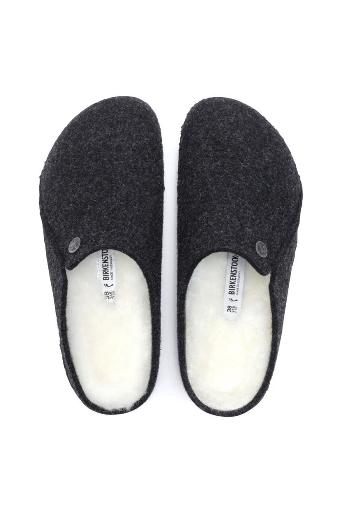 The BIRKENSTOCK Zermatt is our first true slipper. It features our iconic cork latex footbed, and to keep you extra cozy, itβs fully lined in genuine shearling that will keep your feet warm all winter long. The upper consists of soft genuine wool.