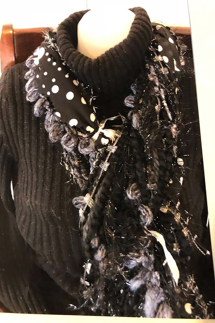 Discover timeless style with our Black & White Polka Dot Textured Scarf. This classic accessory features a chic polka dot pattern with a sophisticated textured finish, adding a touch of playful elegance to any outfit.