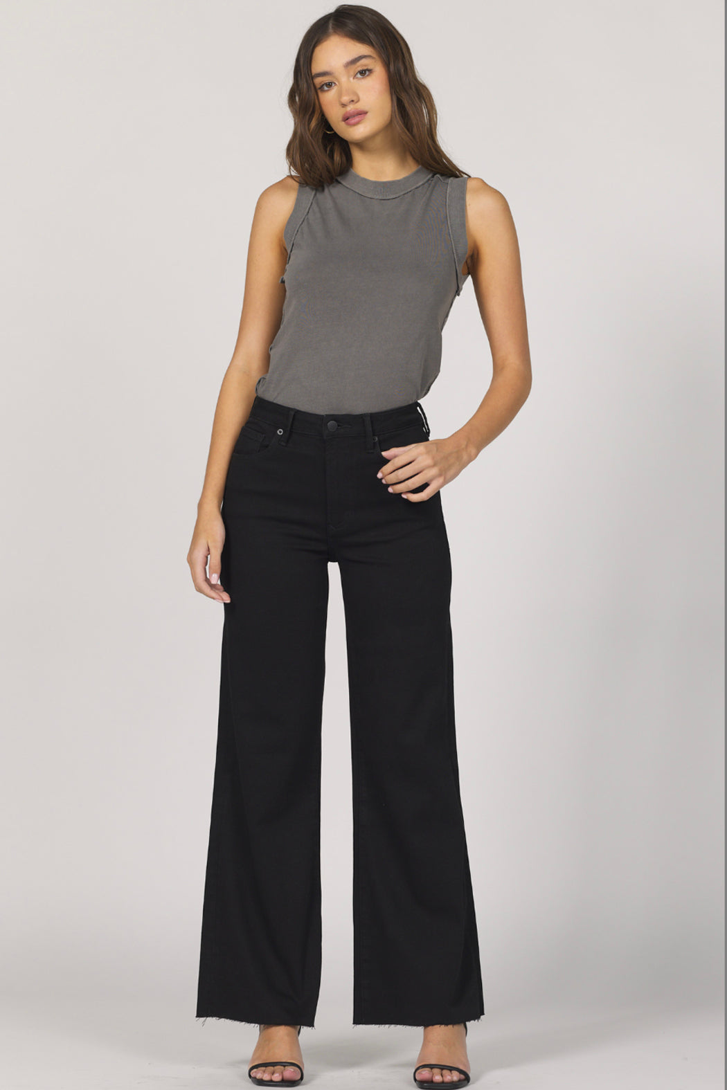 Refined pairing with our Fiona wide leg jean in Black Arrow color.