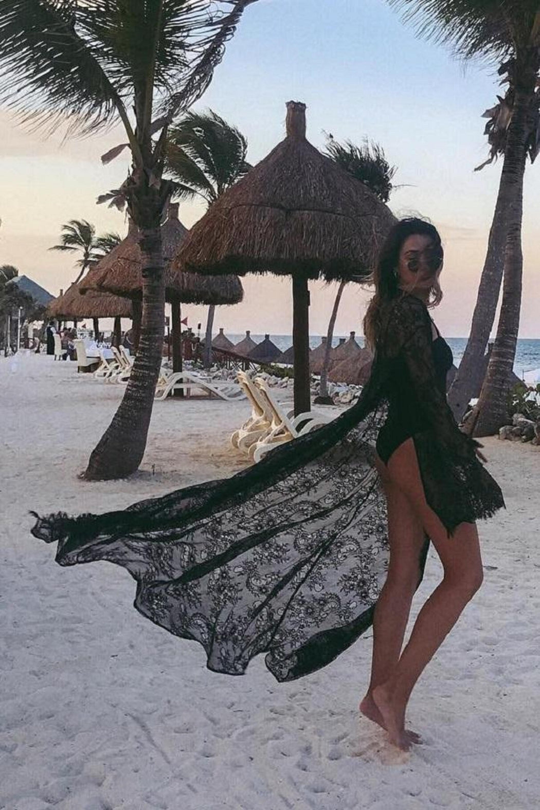 Black Boho Beach Dress Bikini Cover-Up/sarong