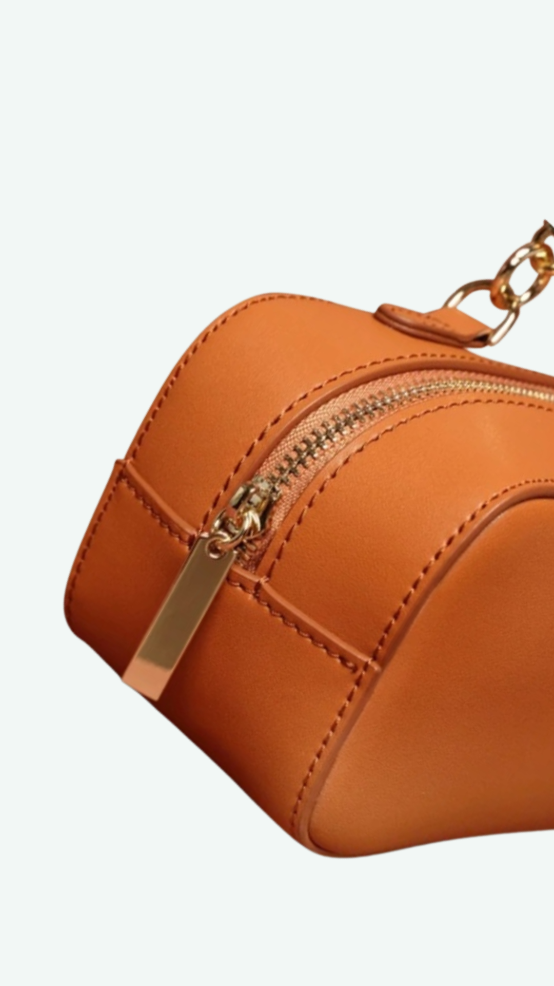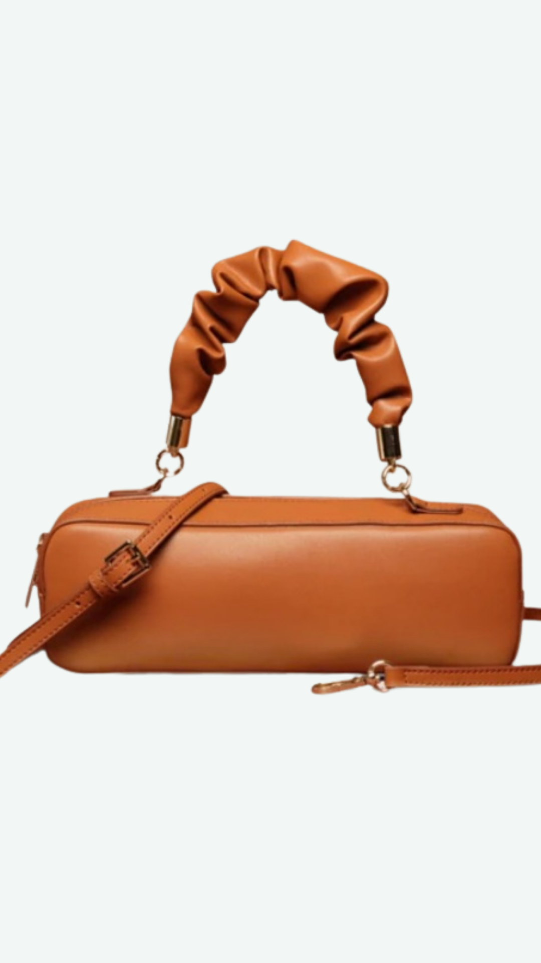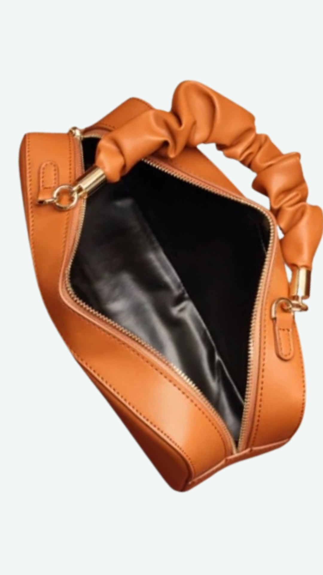This beautiful soft leather cube shaped bag is a must have! You will love it's sleek & modern design. Features beautiful soft leather. A comfy leather carrying handle or crossbody strap. Inside zipper to store all of your essentials.