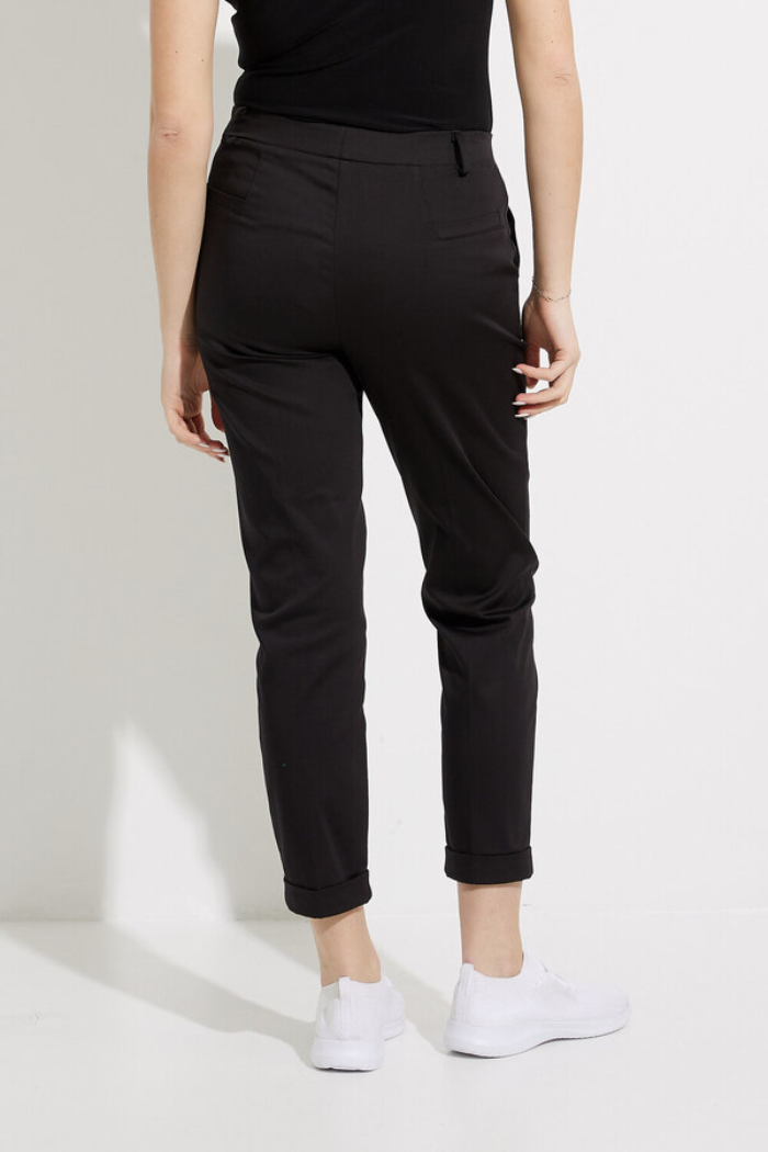 A smart and sophisticated choice for the office, these Joseph Ribkoff pants feature a rolled cuff and clean front, making them a timeless and trans-seasonal choice. With a slim leg and slightly cropped ankle, these are an appropriate choice for summer days at work, and summer nights out with friends.