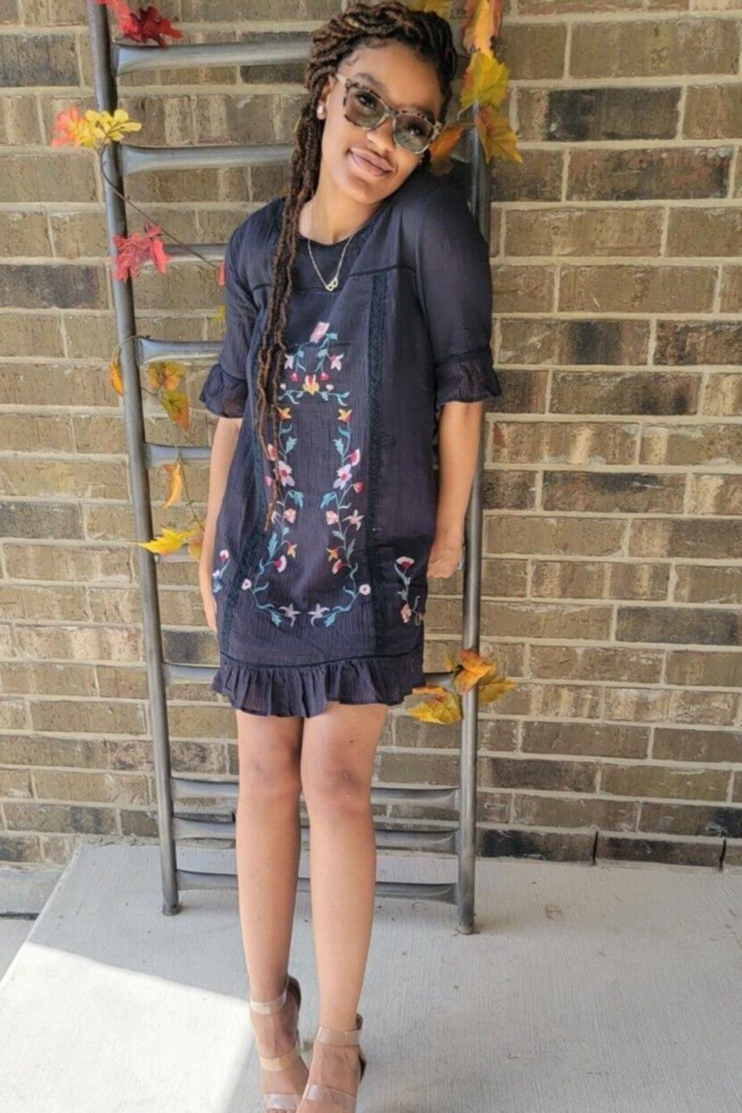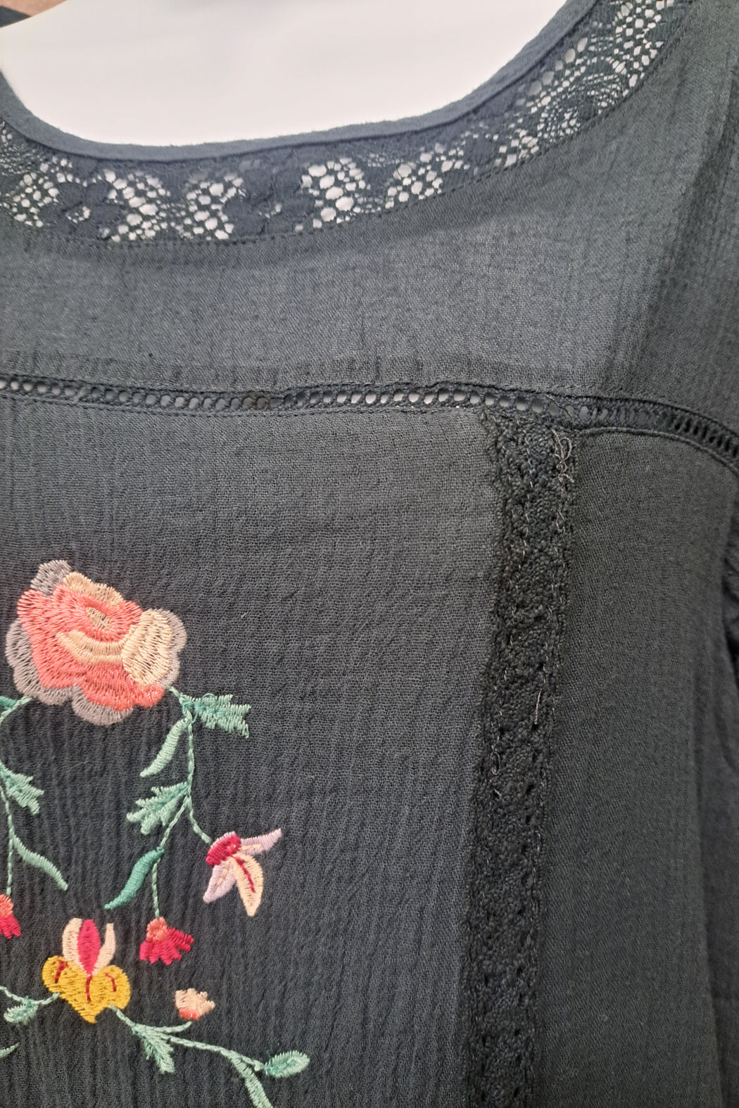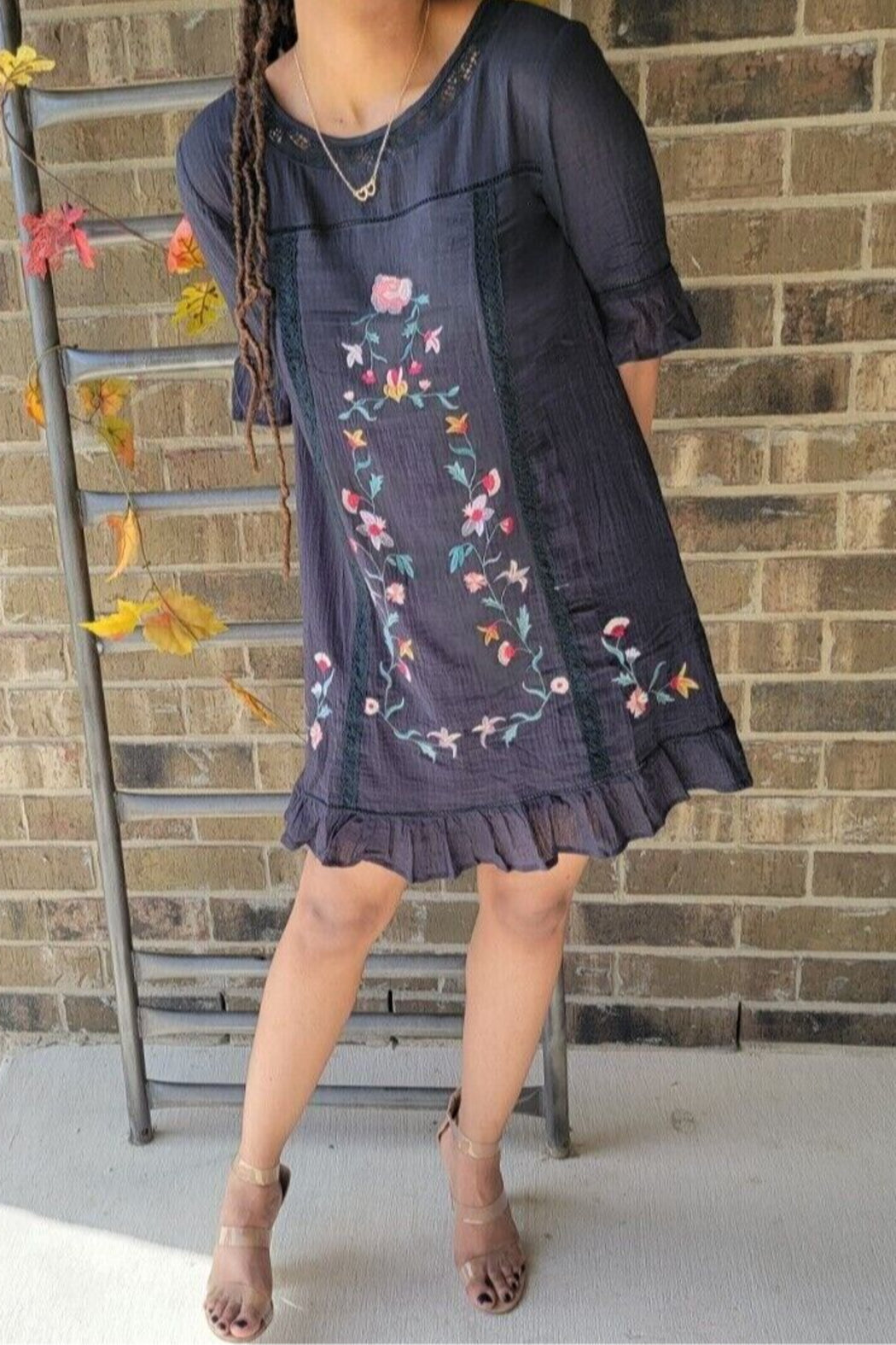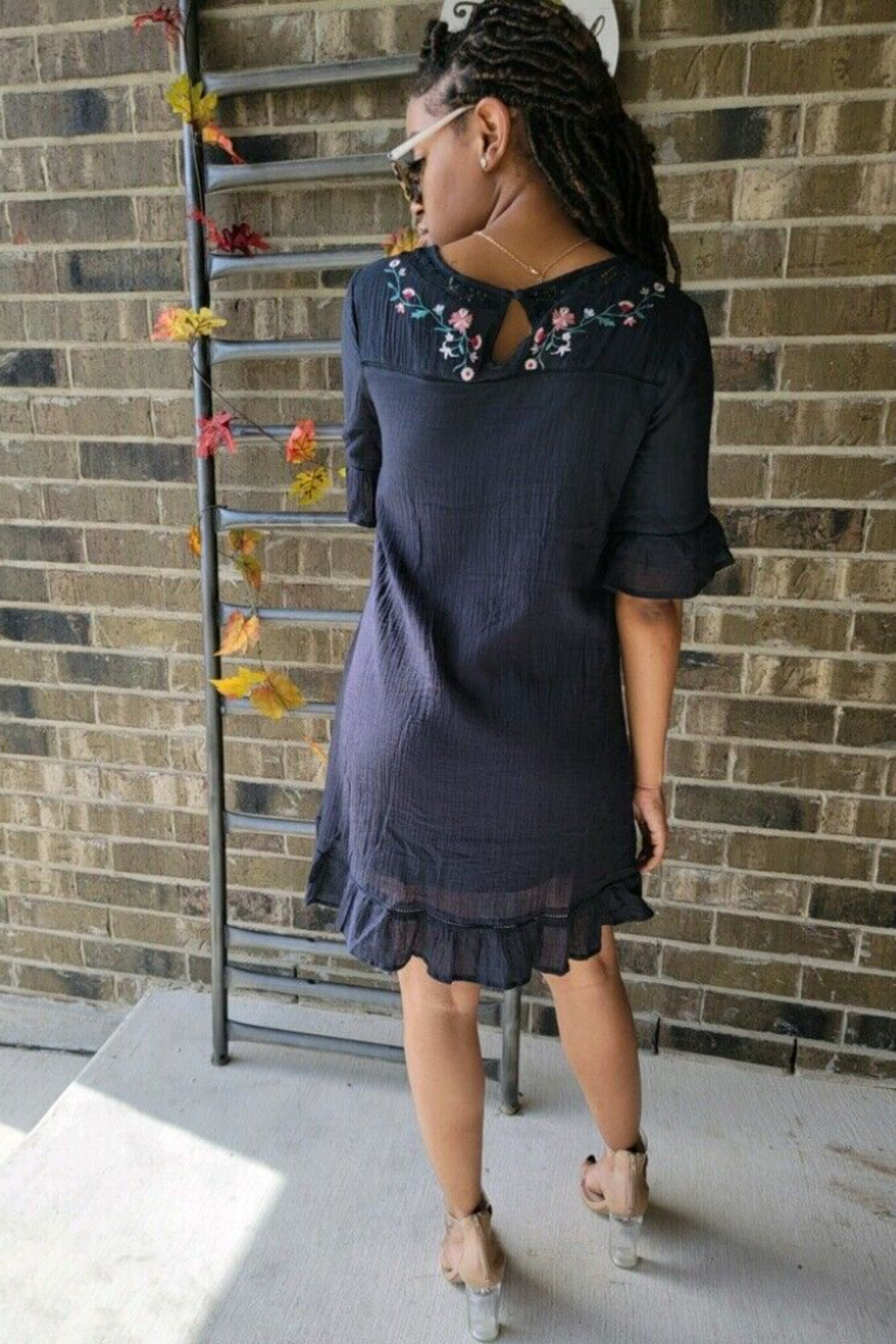 This beautiful, black embroidered and lace Short Sleeved Dress is the perfect statement-making piece. The dress is detailed with intricate embroidery and lace to give it a look that is both stylish and sophisticated. This dress is sure to turn heads and make any occasion memorable.