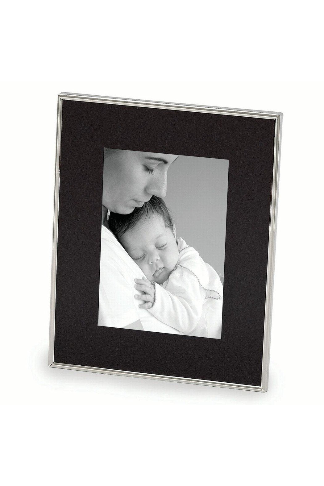 This sleek picture frame in classic black features a non-tarnish metal surround with a black glass interior. Hailing from Creative Gifts "Newton" Collection, this frame holds a 5" x 7" photograph. Black flocked channel back. Vertical and horizontal orientation. Can be hung on the wall or tabletop. Features a hanging bracket for one-nail wall hanging. Measures: 10 inches High, 8 inches Wide, 0.5 inches Deep.