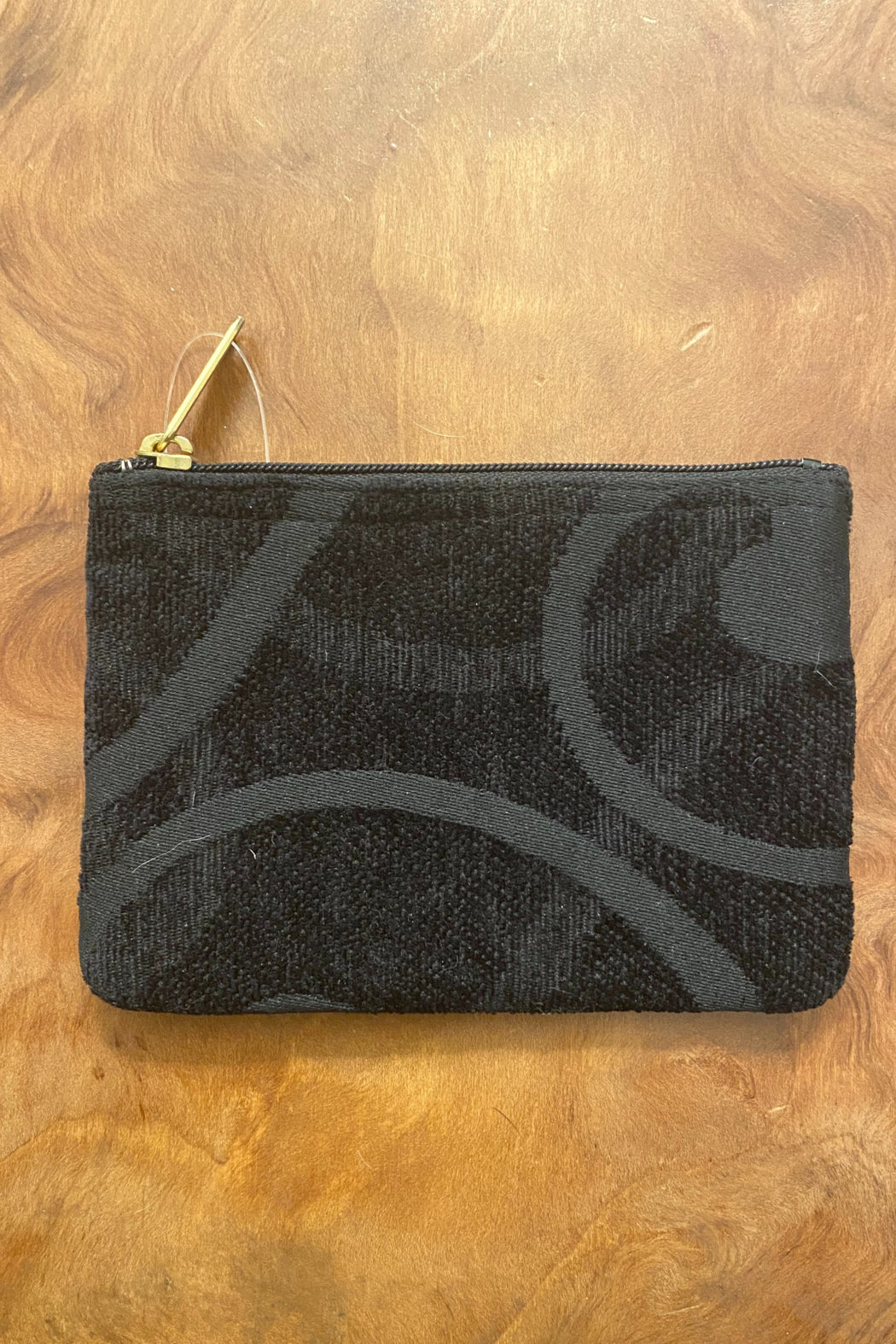 4"x6" black upholstery fabric swirl print clutch or change purse or makeup kit.