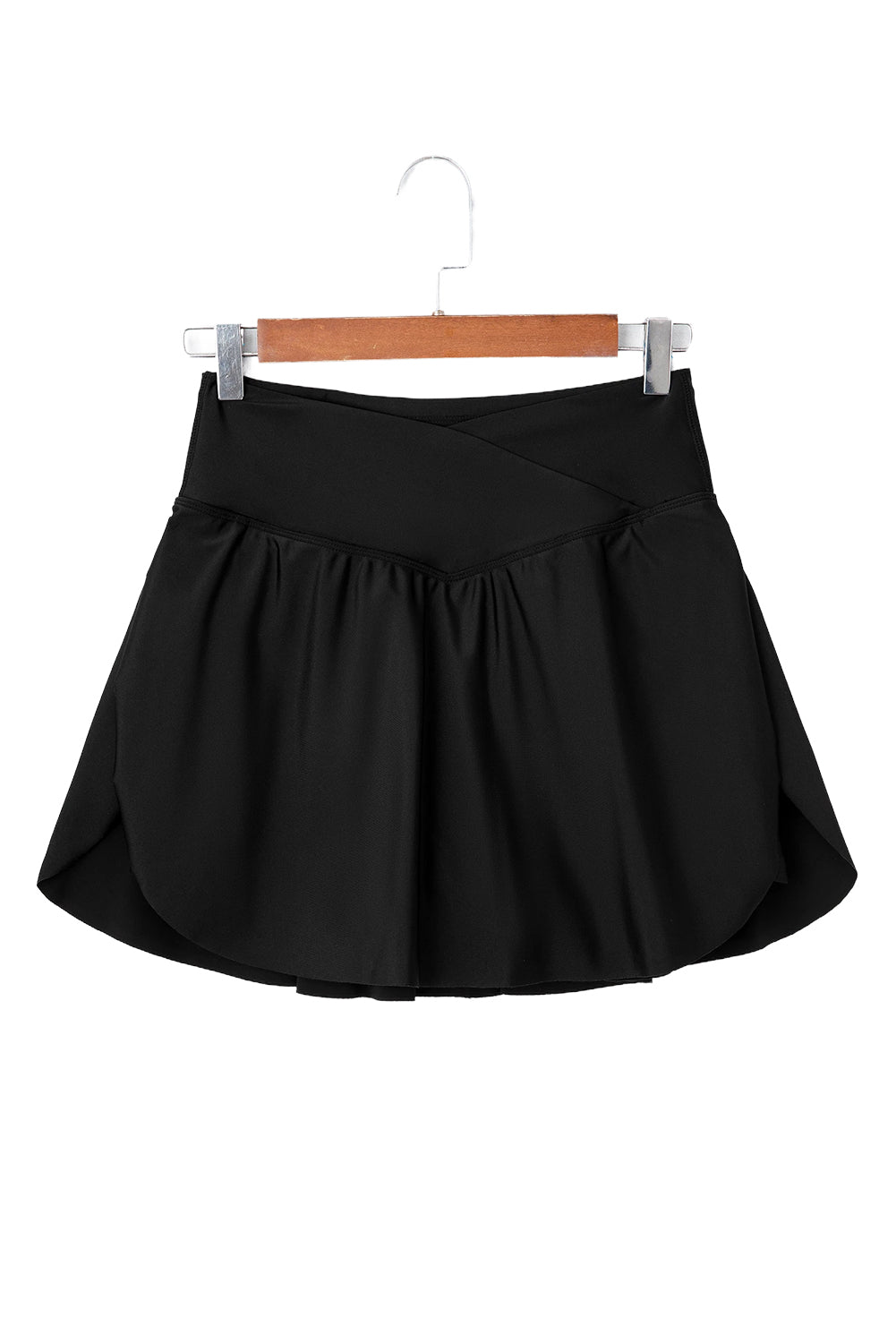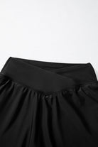 Get ready to feel confident and stylish with our Black Tummy Control Cross Waist Skorts! Our high waist design flatters your figure and provides tummy control for a sleek silhouette. The cross criss detailing adds an elegant touch, perfect for standing out. With functional pockets and the versatility of a skort, you'll stay comfortable and stylish on the go.
