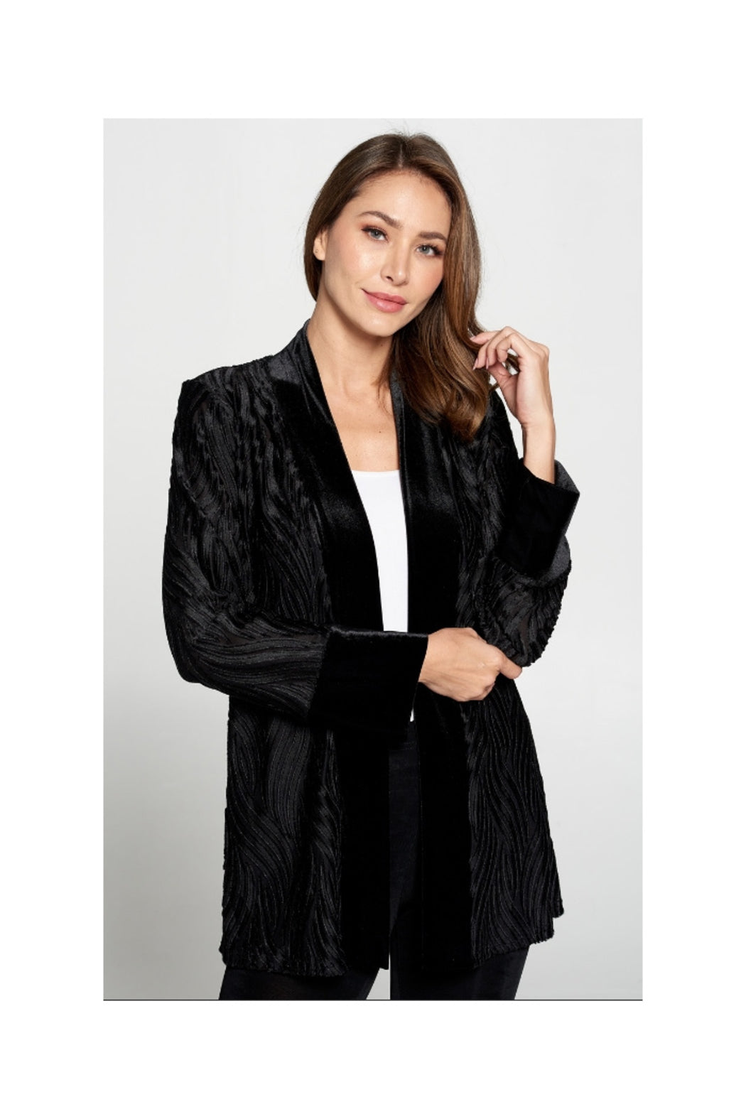 Black Velvet Burnout Jacket with Solid Black Velvet Front Band and Cuff