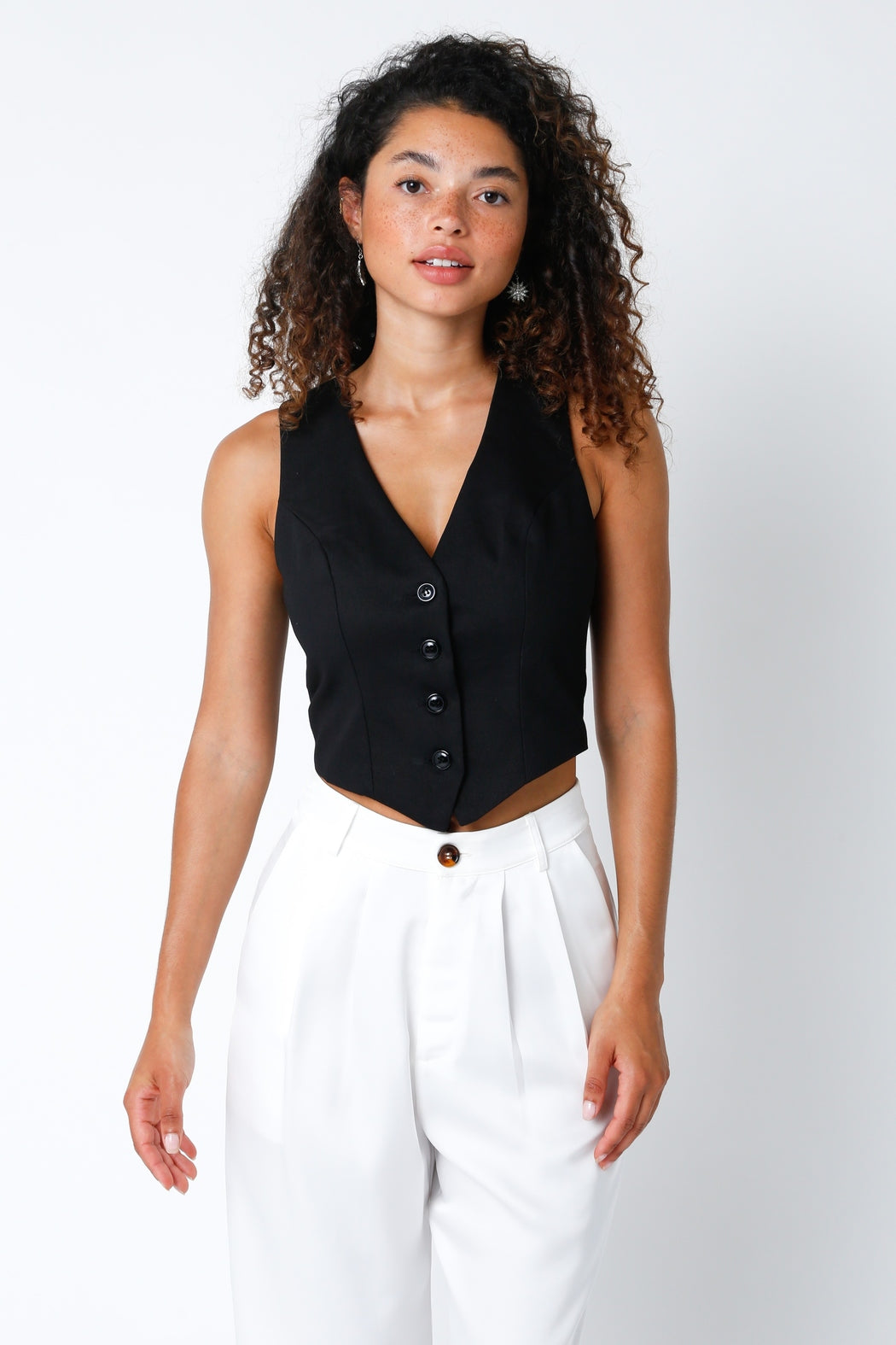 Our Korey Vest features a sleeveless and a button down closure