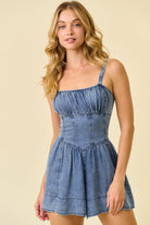 A playful denim romper with a fitted bodice and tiered shorts, the Blue Jean Babe Romper has a sun-ready, casual feel. The romper features thin straps and gathered detailing across the bust for a flattering, feminine silhouette. Doe & Rae designed this piece in soft-washed denim that wears like a favorite pair of jeans. Pack it for warm-weather weekends or pair with sandals for relaxed daytime outings.