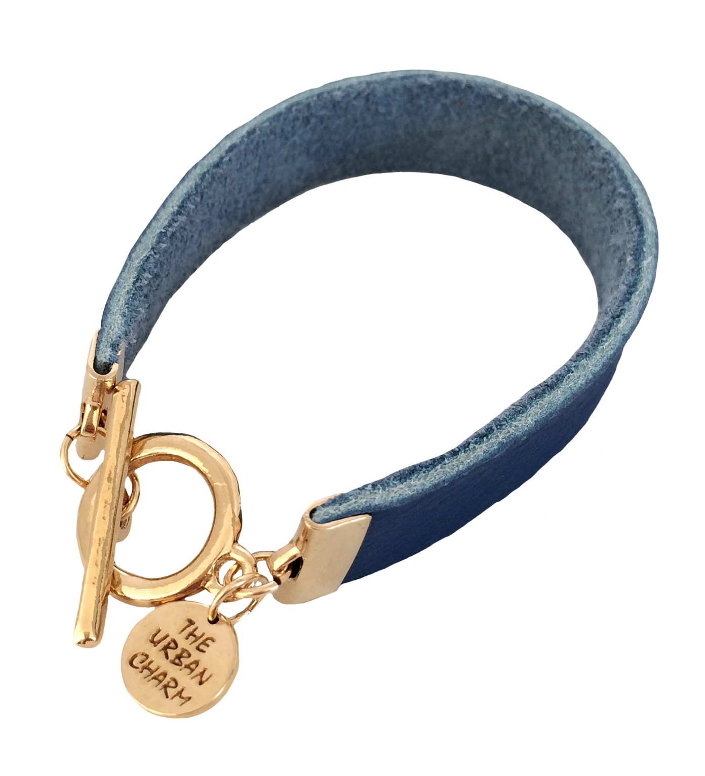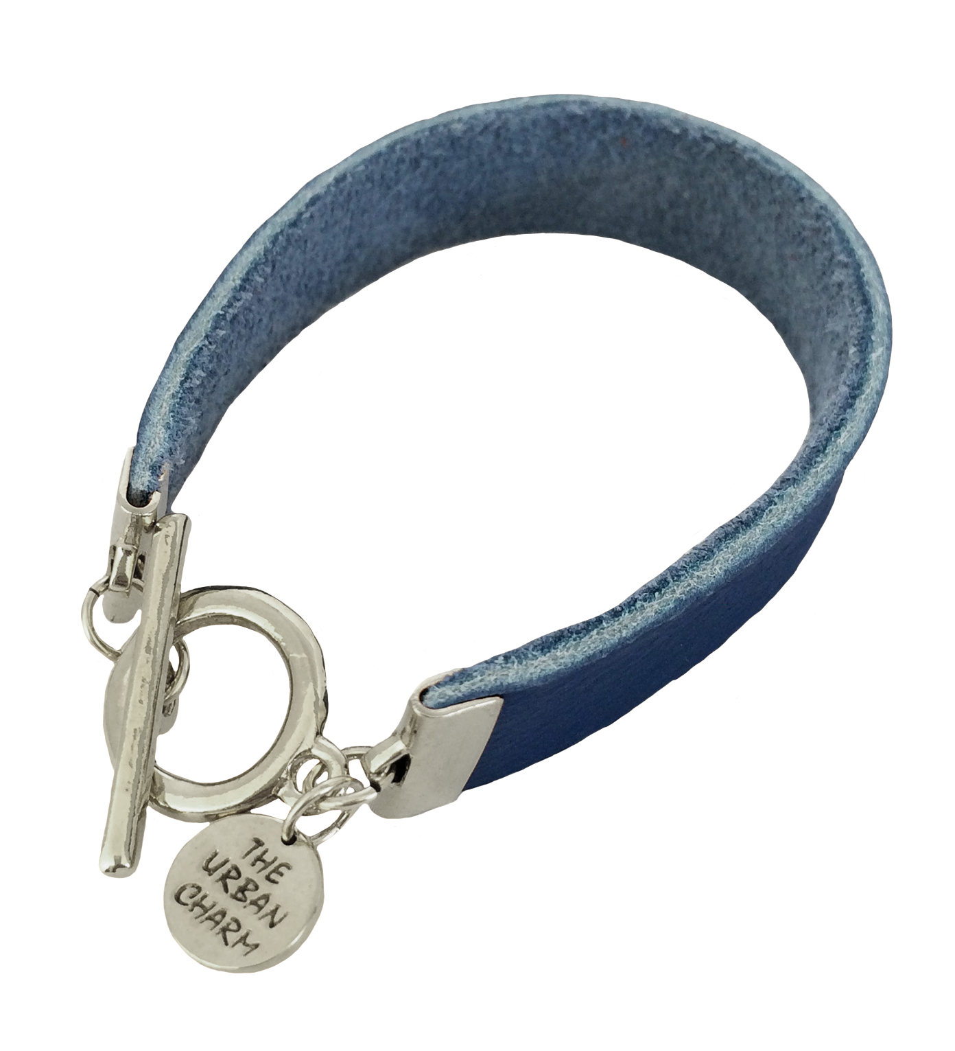 The Urban Charm blue color band is made with genuine leather and features a branded hand casted logo and toggle closure. Pair it with any of the lures of love earrings or stack more up your arm for an arm party. You can add your favorite essential oil to the back of the leather to keep you feeling and smelling great all day.