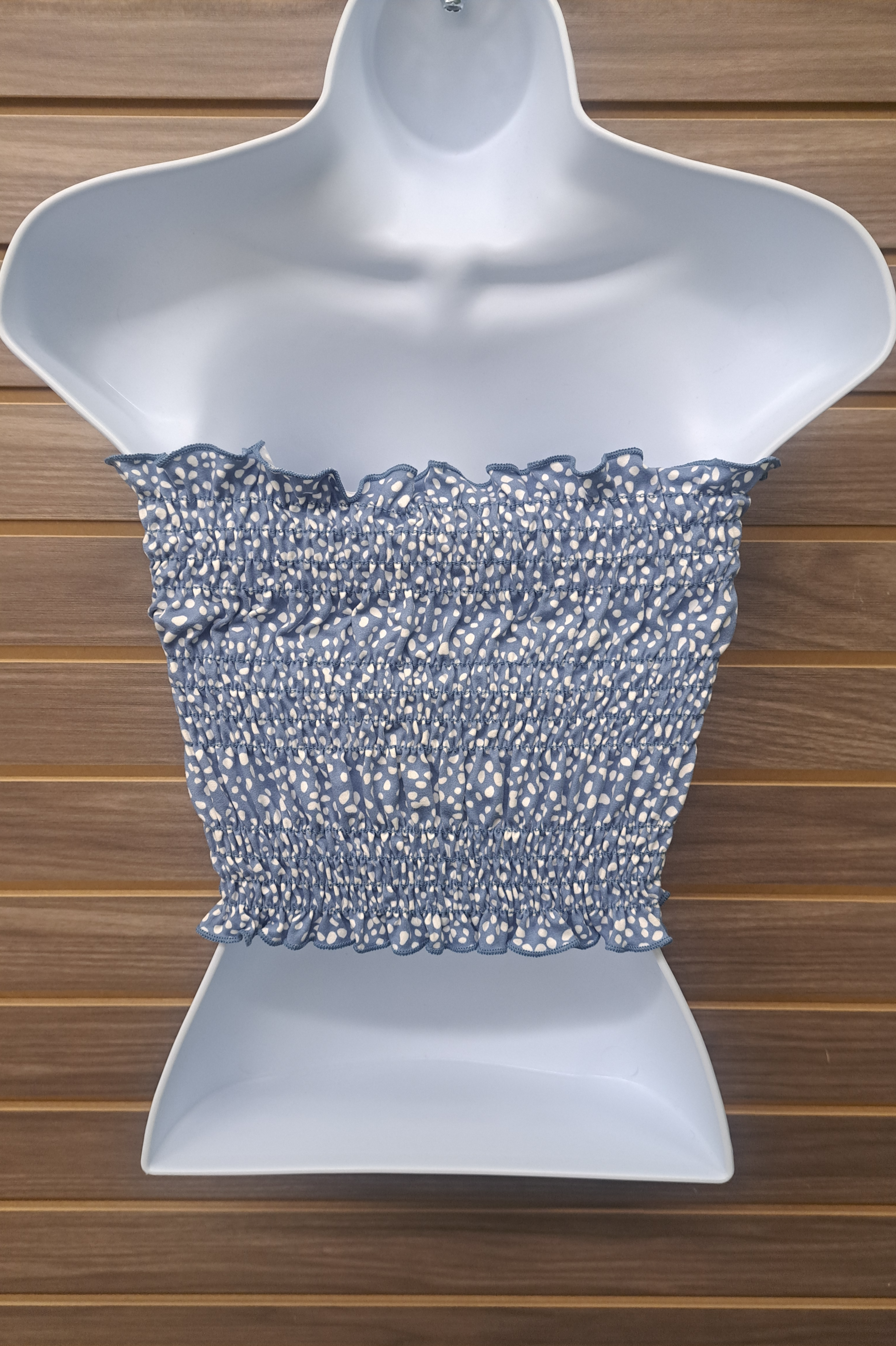 This Blue spotted tube top offers a comfortable fit, with its lightweight and breathable fabric made from 96% polyester and 4% spandex. The stretchy and form-fitting construction makes this top perfect for workouts, beach days, and everyday wear.