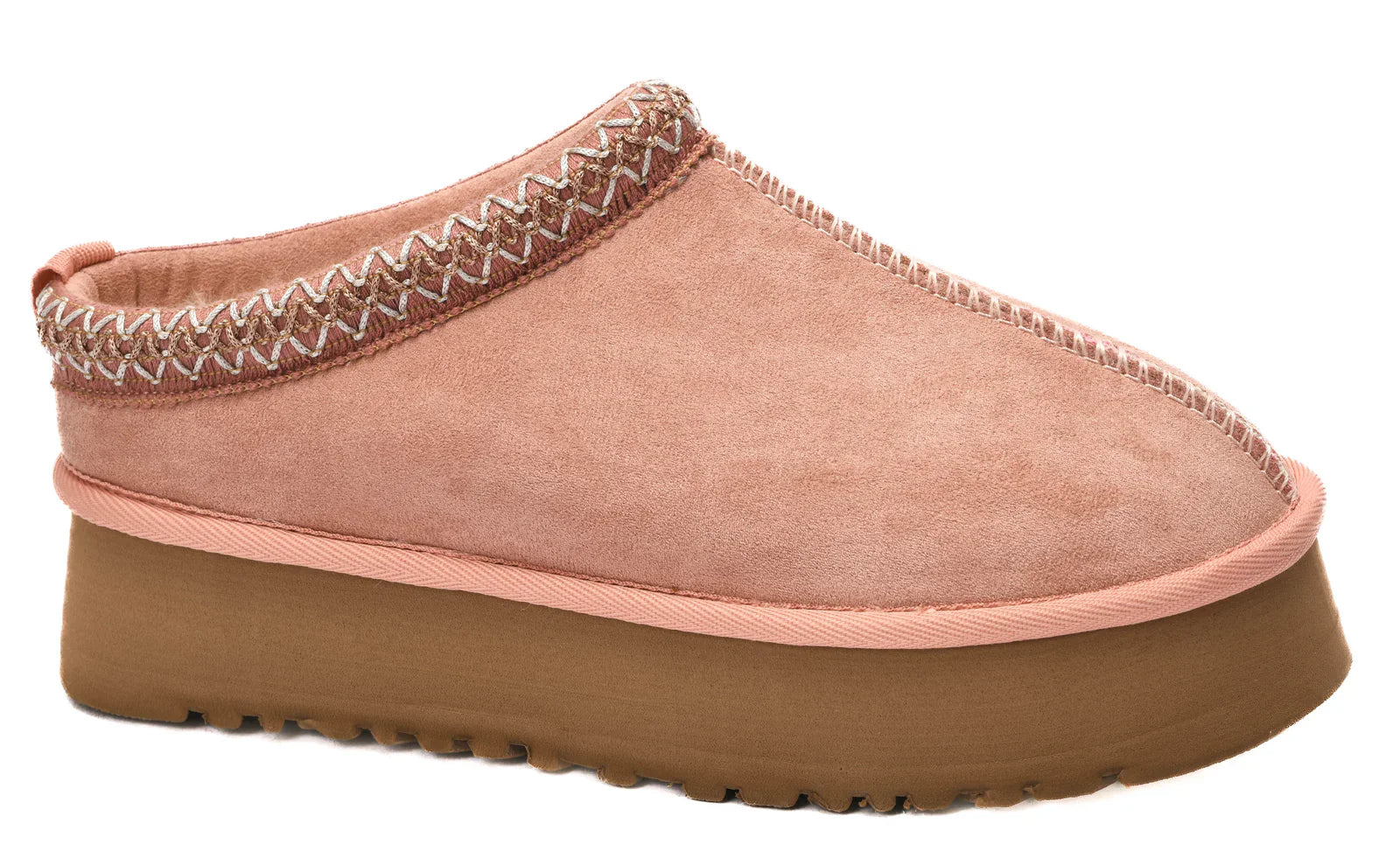Get ready for ultimate comfort and style with Corky's Blush Faux Suede Pillow Talk platform slippers. With a 1.5inch platform and soft faux suede material, these slippers will provide the perfect fit and cozy experience. The blush color and fur interior add a touch of luxury to these platform booties.