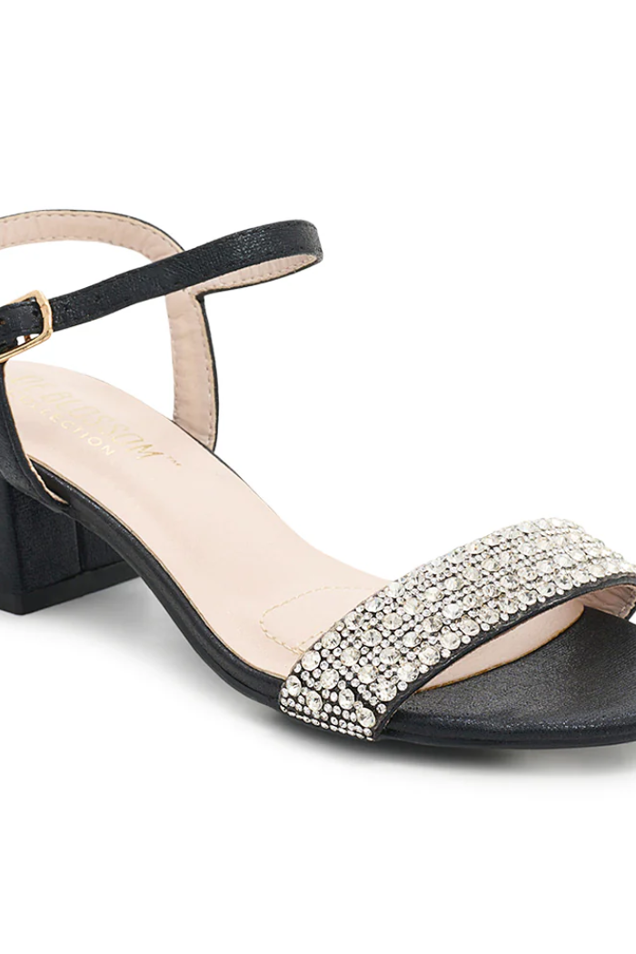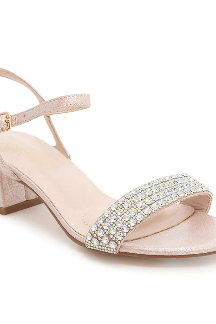 These blush shimmer sparkle block heels are perfect for any occasion. They have a nice rhinestone strap that goes across the front of the foot. The heel is also a nice block heel that is 2" tall. The block heels makes it easy for all day comfort. It also has an adjustable ankle strap.