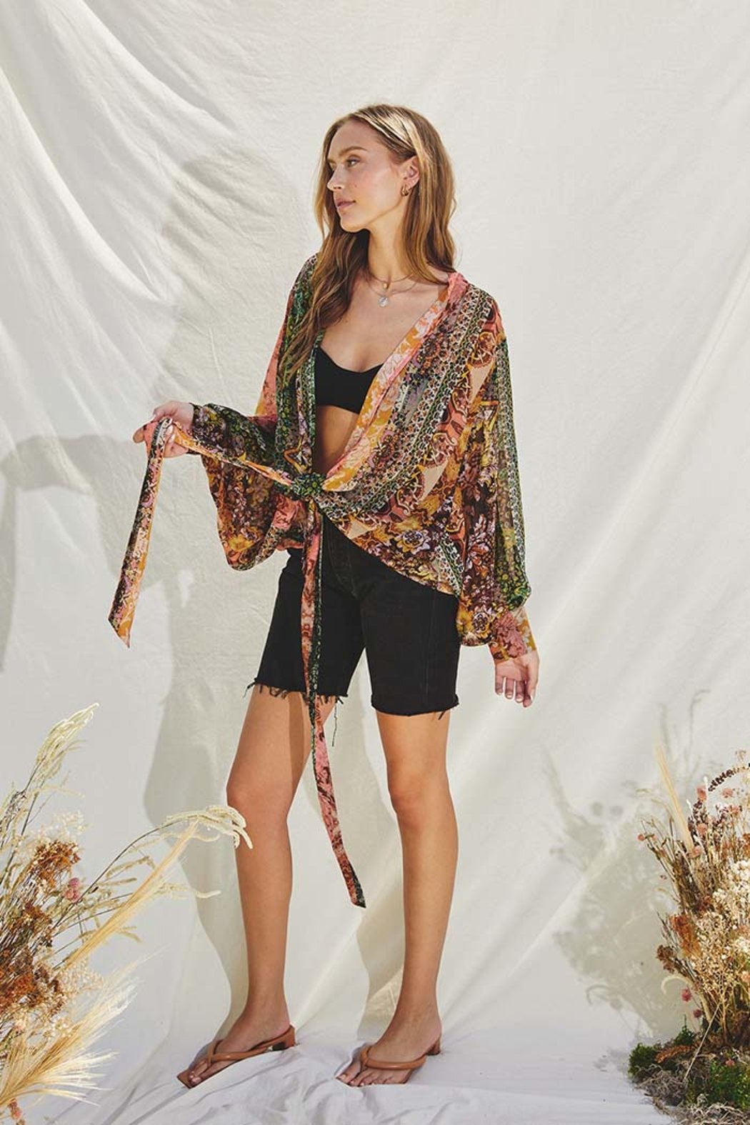 Boho Floral Tie Detail Kimono.