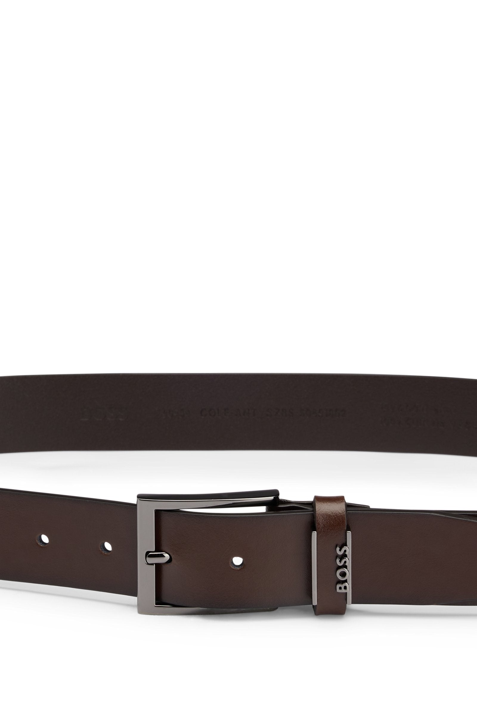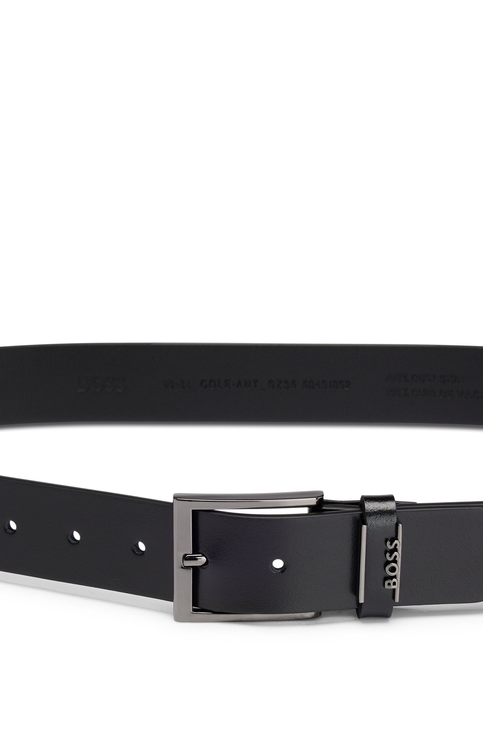 Cut from Italian leather and with metallic lettering on the keeper, this BOSS Cole-Ant Sz35 Belt offers a stylish and sophisticated look. The 3.5cm width is perfect for any occasion. For the best fit, we advise ordering one size larger than your waist size. 60% of the leather used is certified from responsible tanneries.