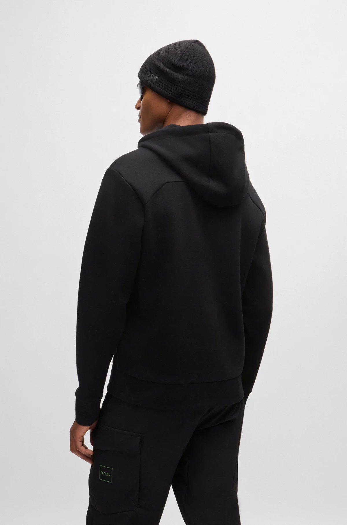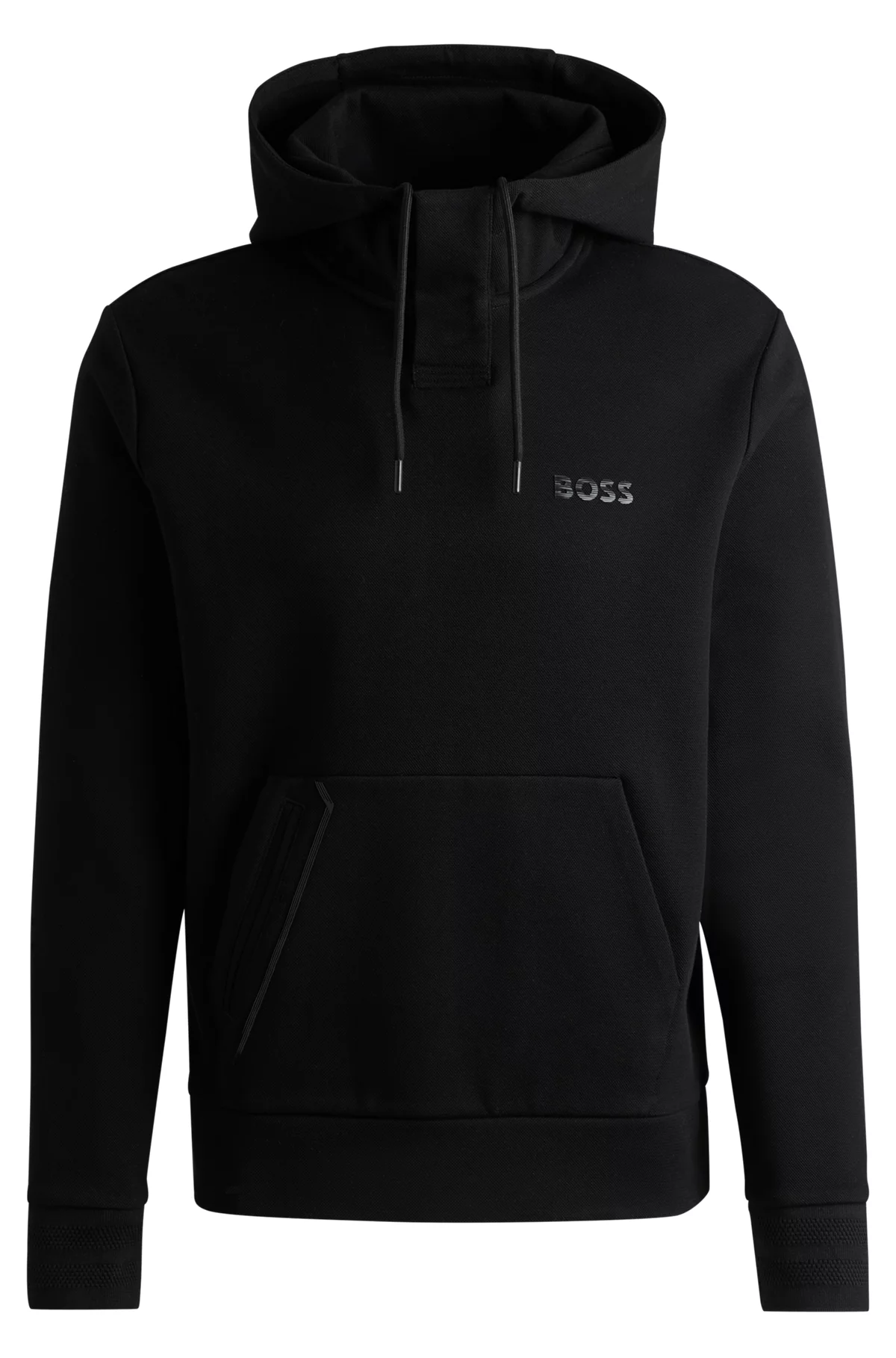 Stay sharp with the Boss Hoodie, featuring a sporty placket and mirror-effect branding. Made with mercerized cotton for a cozy feel, this hoodie also boasts a kangaroo pocket and ribbed cuffs. Perfect for a casual yet stylish look. Time to boss up! 🤘