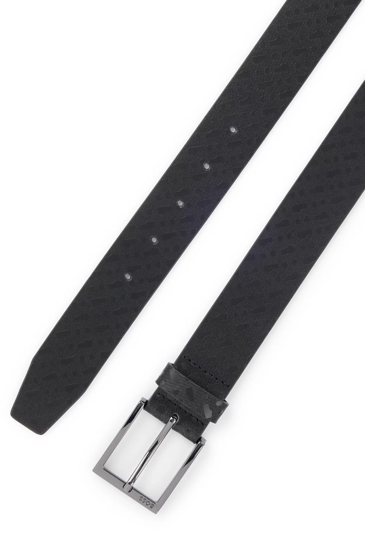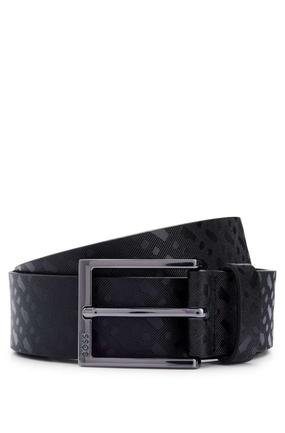 Elevate your style with the Boss Italian Leather Belt featuring embossed monograms. Made of luxurious Italian leather, this 3.5cm width belt is a timeless accessory. For the perfect fit, order one size larger than your waist. Polished gunmetal hardware adds a refined touch.
